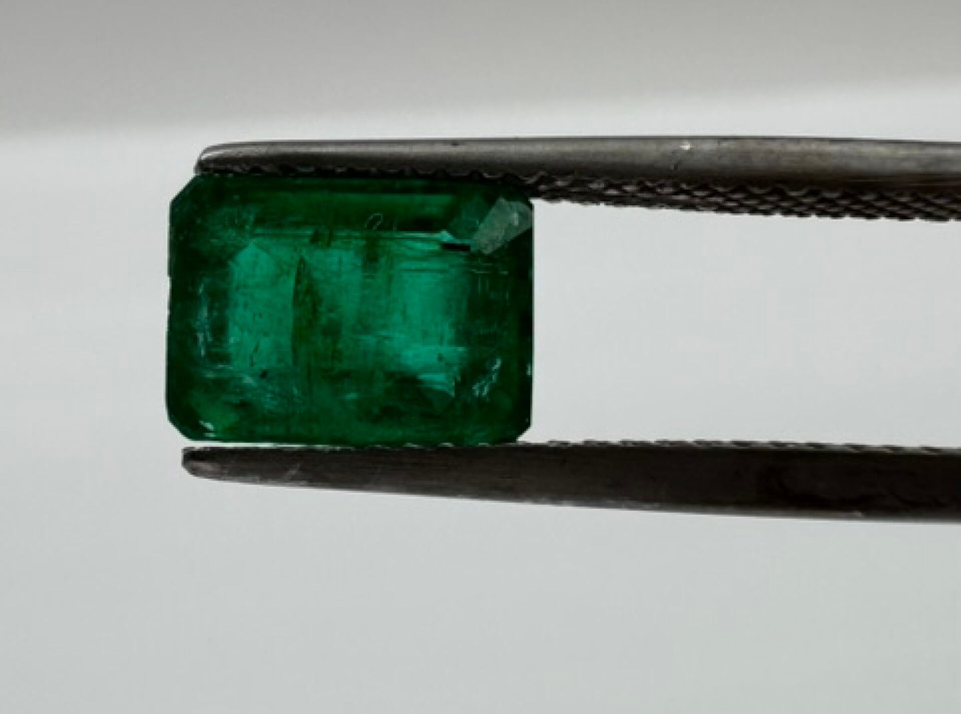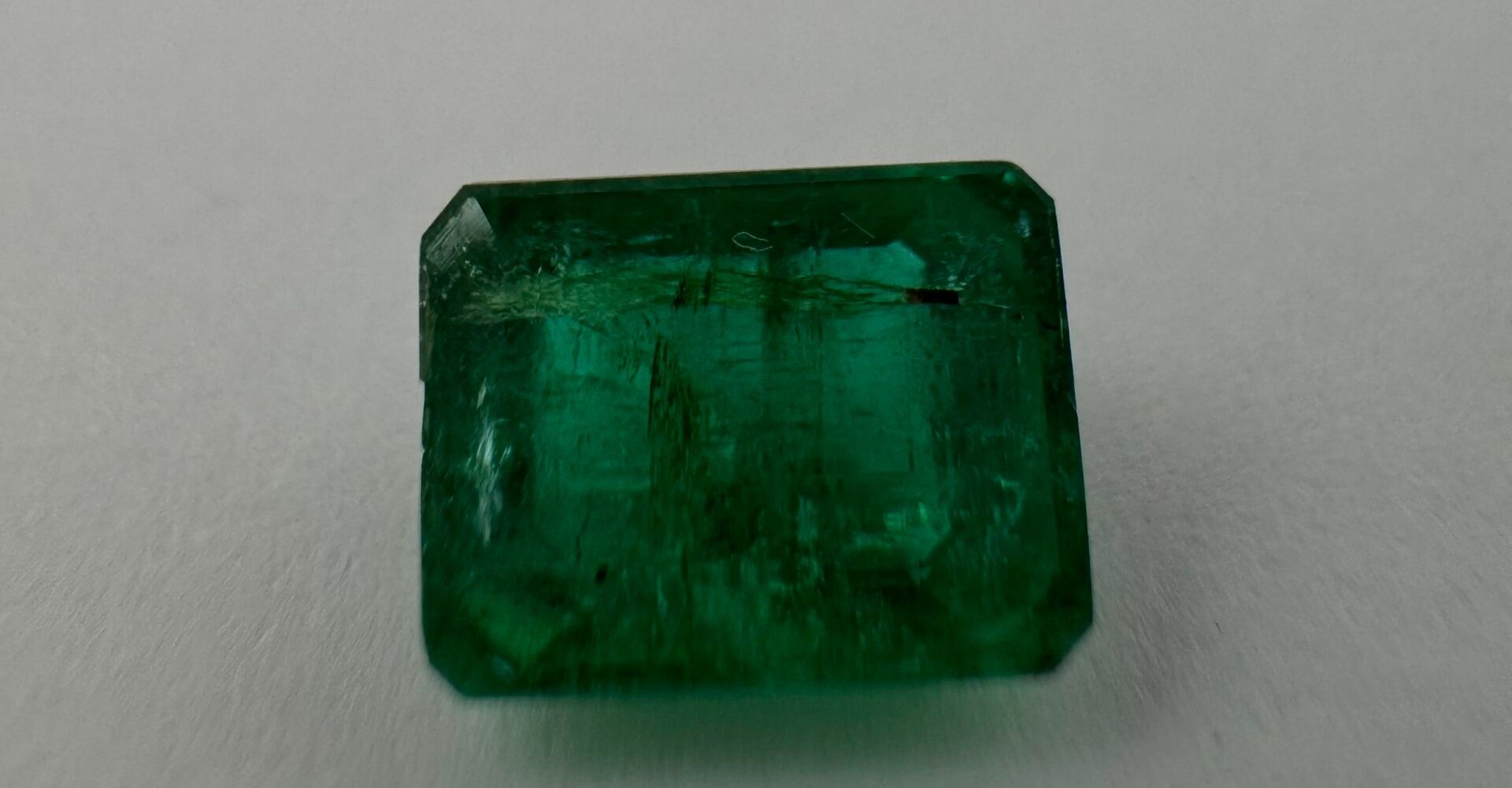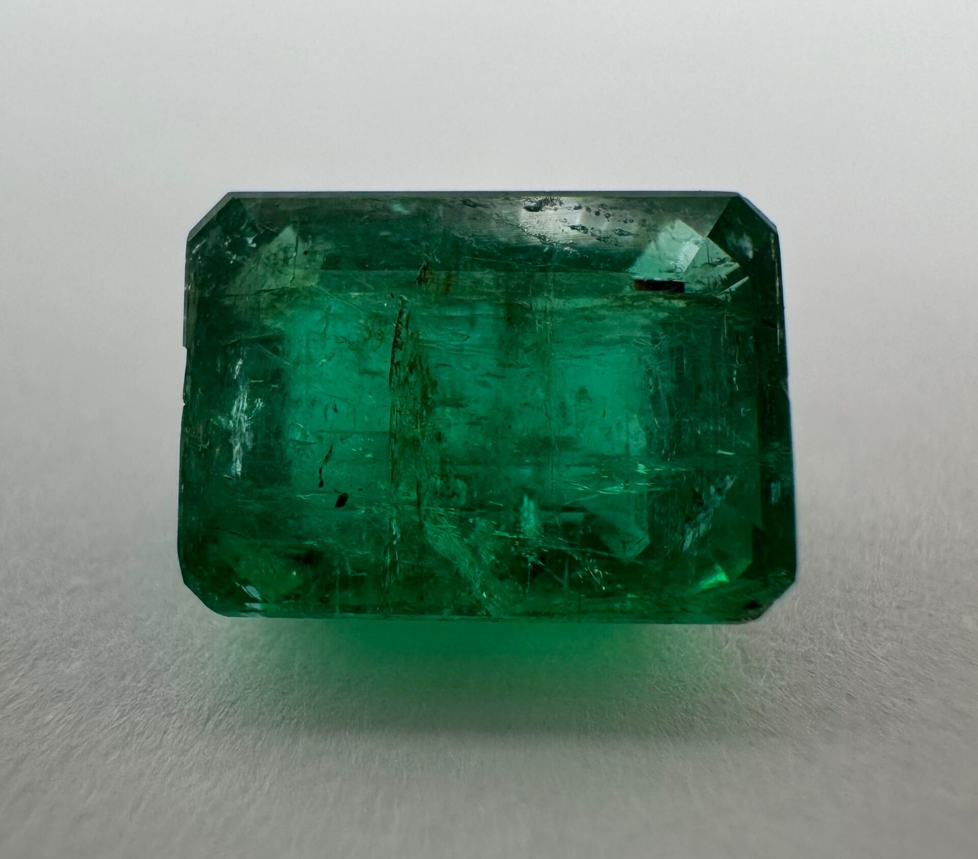 Premium Rectangular emerald cut on paper, weighing 2.43 carats.