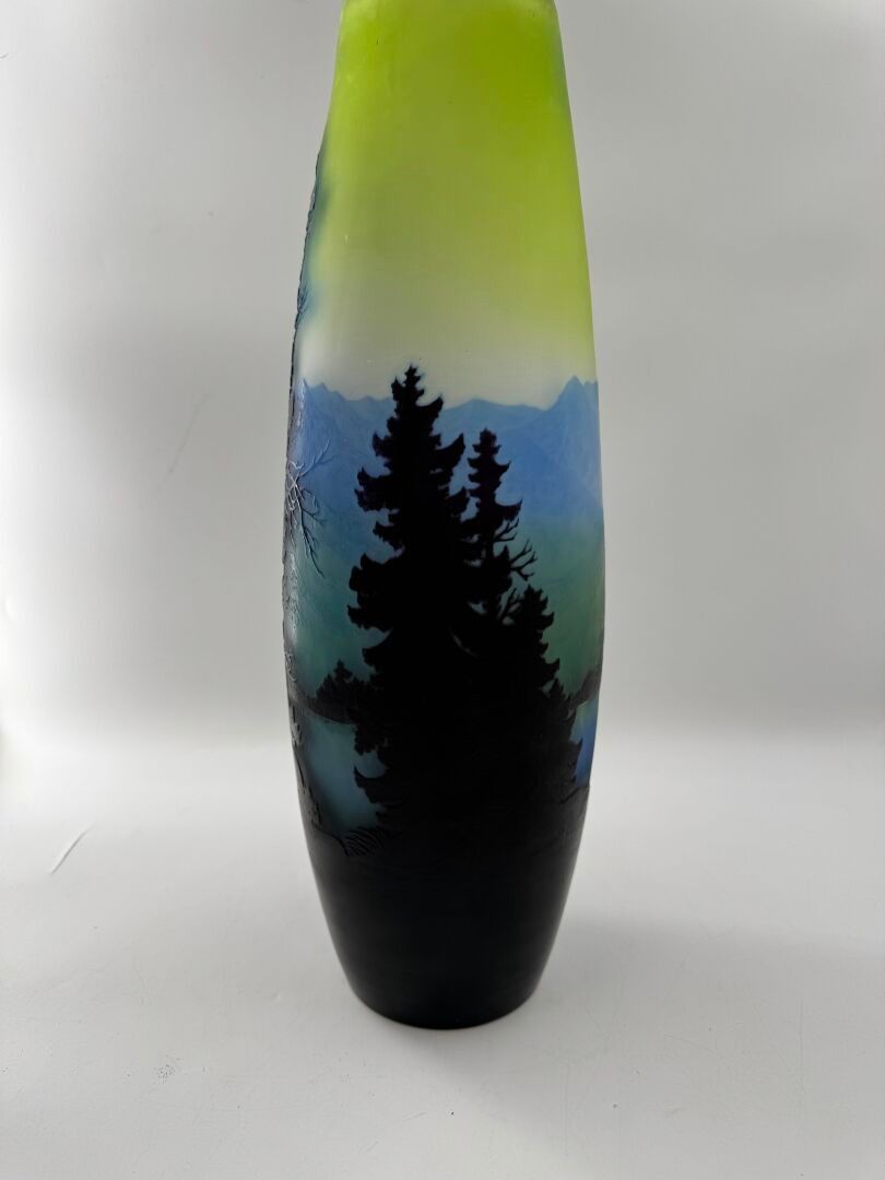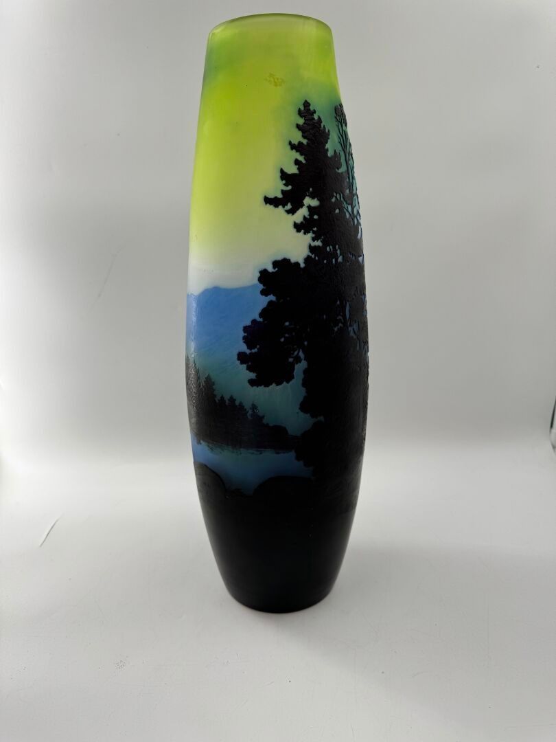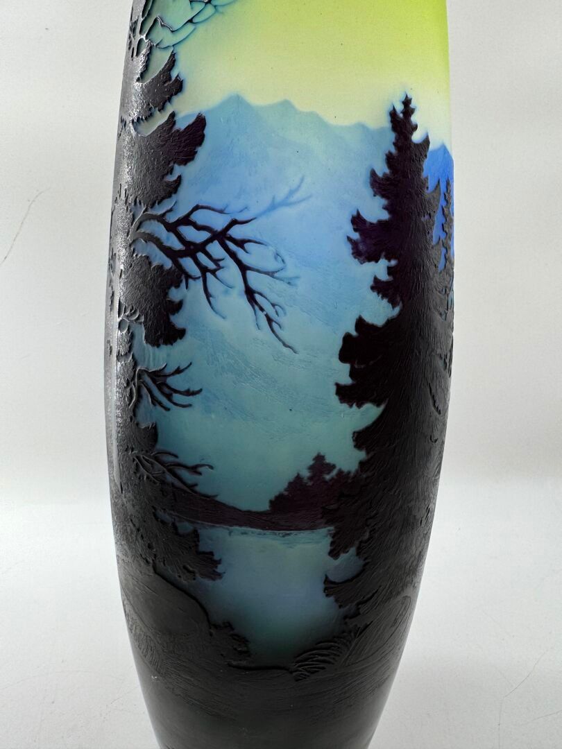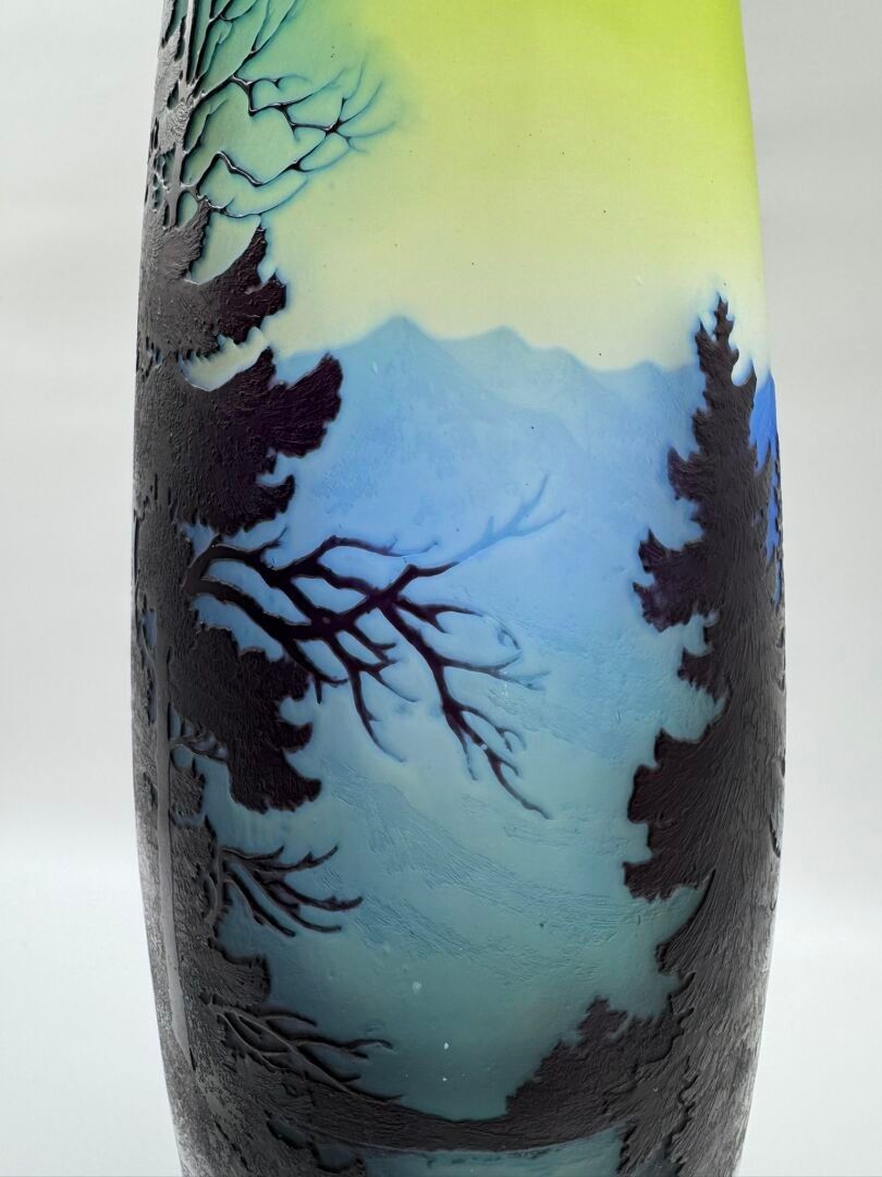 Tubular vase with acid-etched cameo of a Vosges landscape.