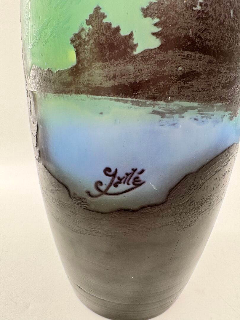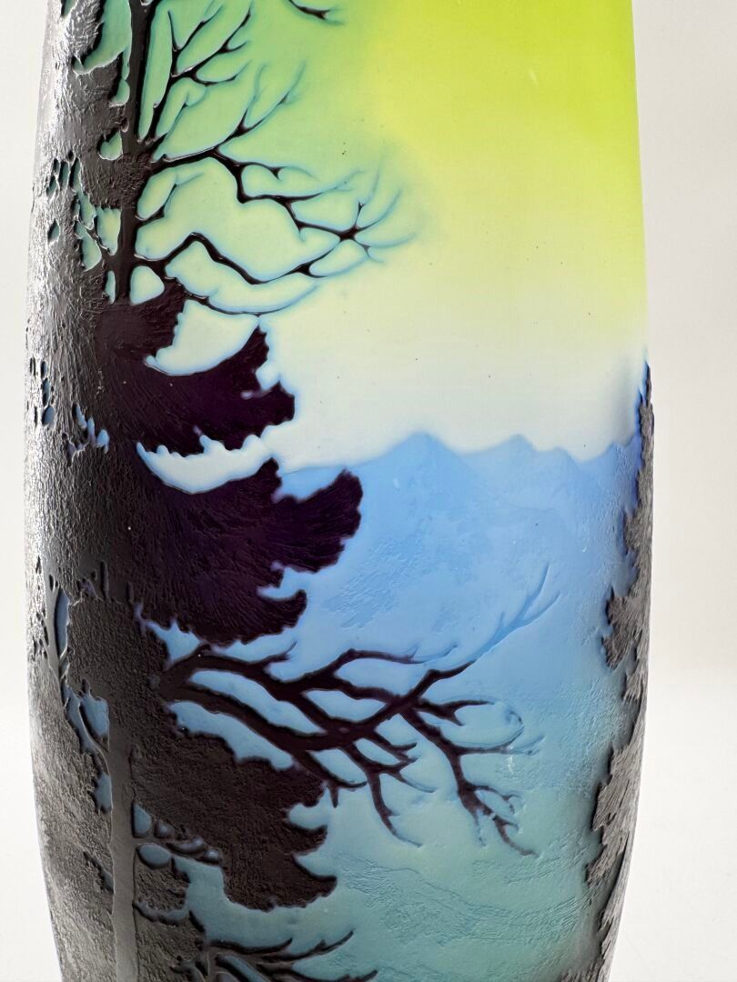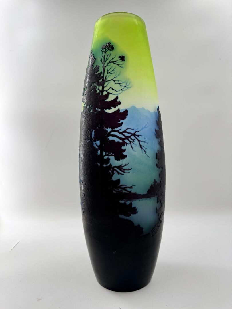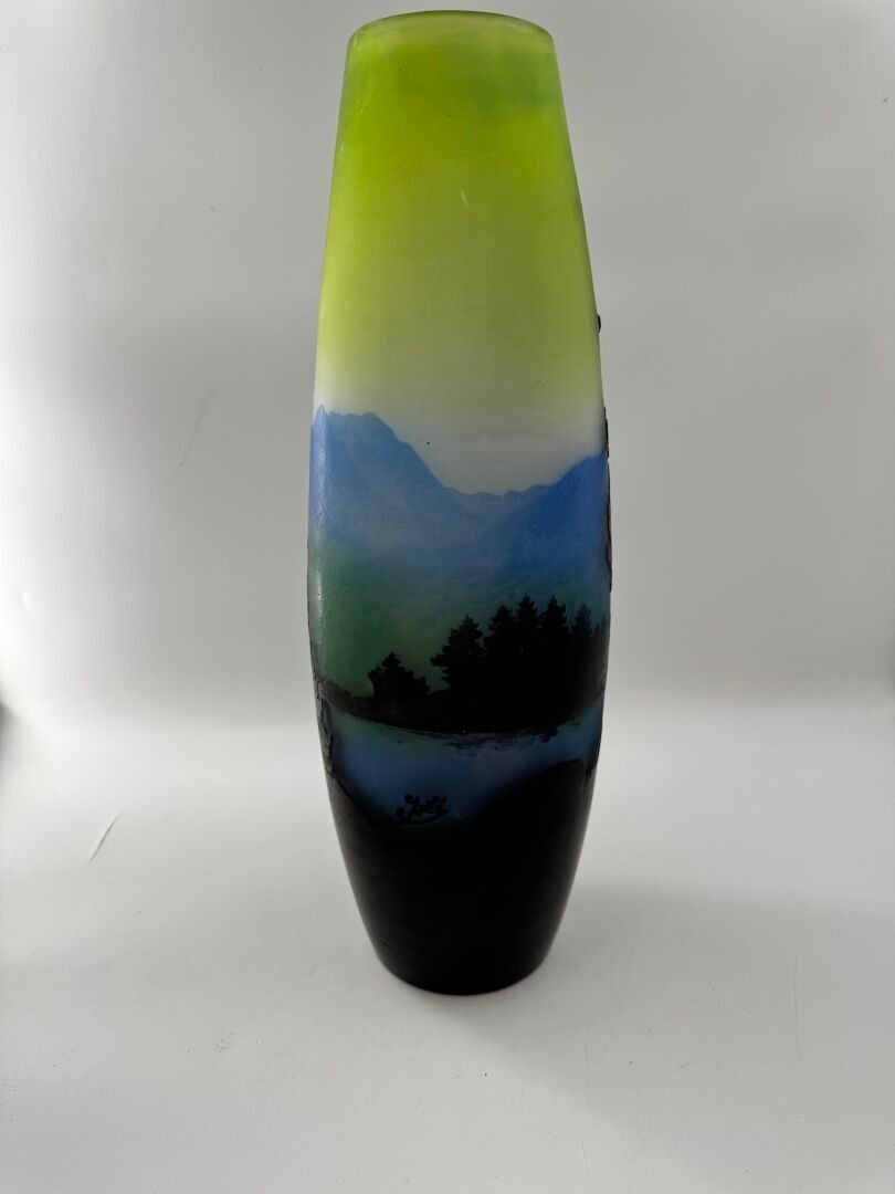 Tubular vase with acid-etched cameo of a Vosges landscape.