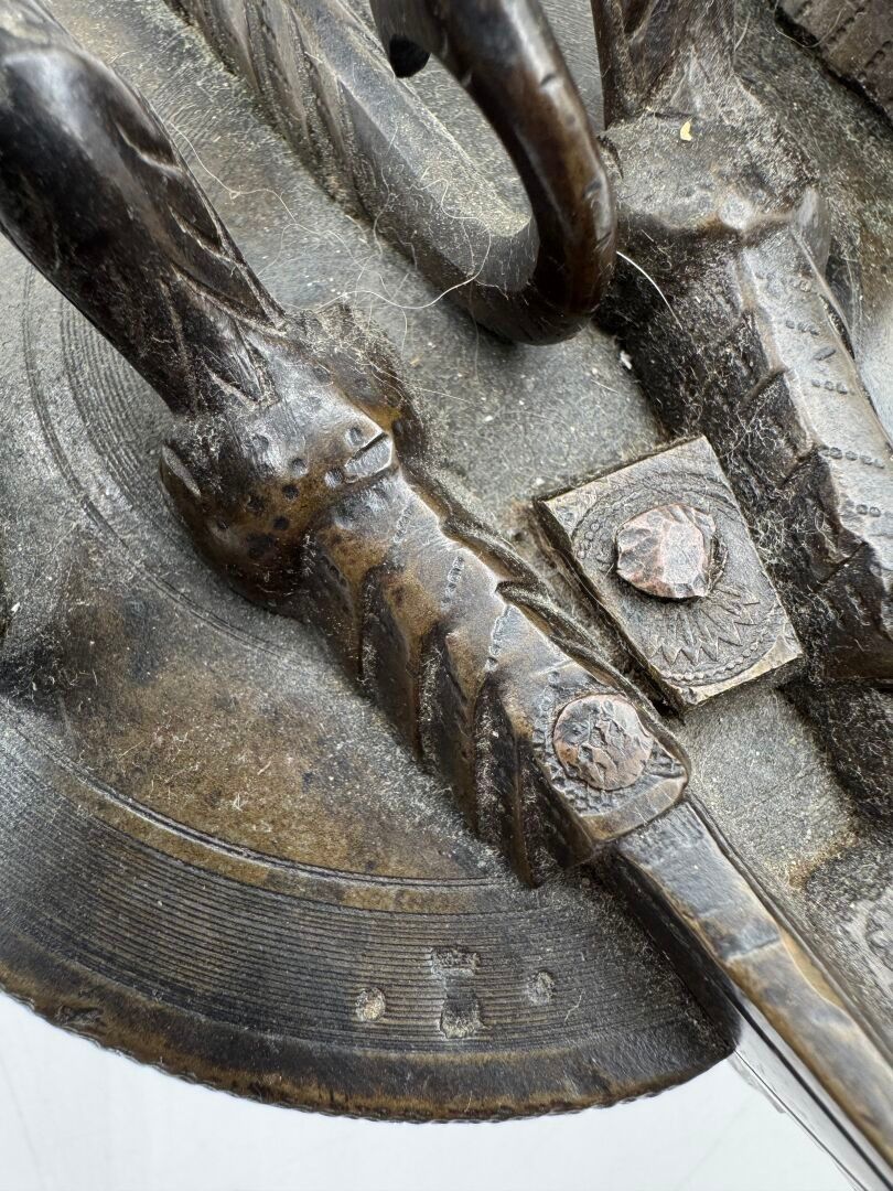A 16-pound bronze "Nuremberg" weight stack, the body decorat…