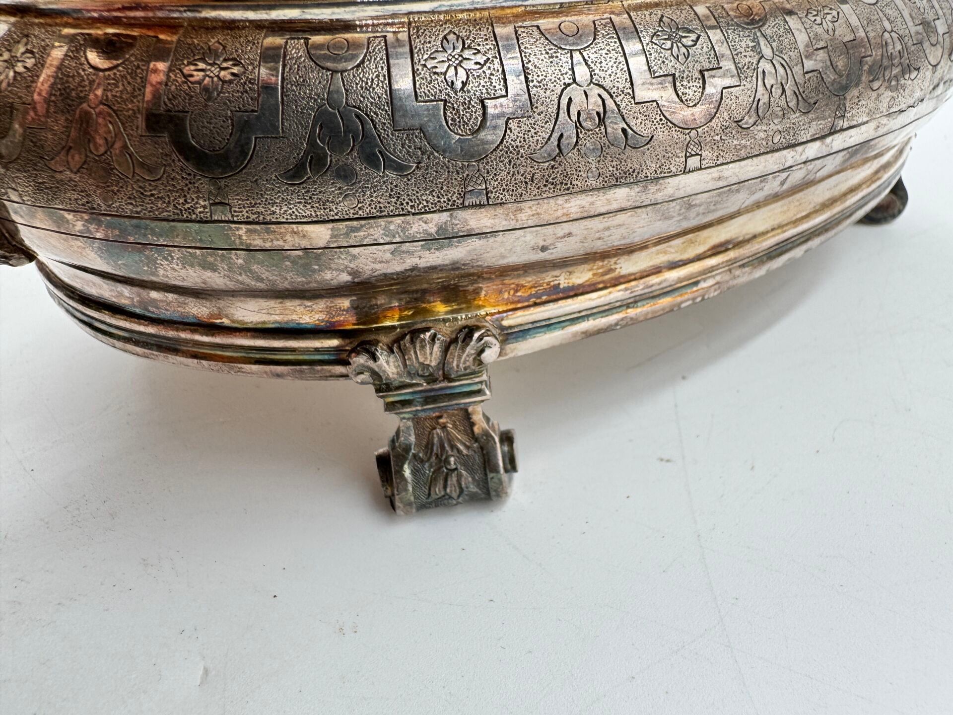 From this perspective, the oil basin presented here is of a truly remarkable nature. With its chiselled fleuron decoration, it lies at the crossroads of styles and prefigures the ornamental forms that would later be known as the Régence style.