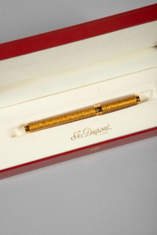 * DUPONT. Champagne coloured pen in gold plated metal and Chinese lacquer. In its case. This lot is sold by SELARL GILLET-SEURAT-MORETTON, at the request of AGRASC, the fees and taxes are as follows: 14.28% inclusive of tax (i.e. 11.90% exclusive of tax (VAT 20%)).