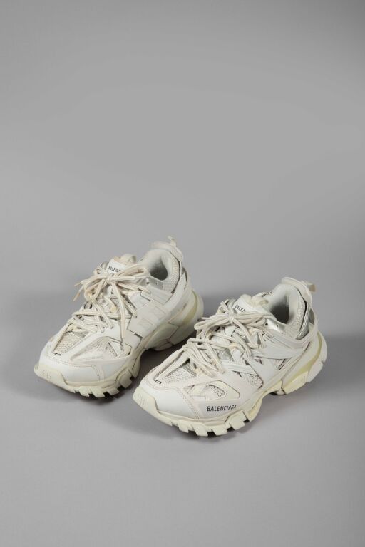 * BALENCIAGA. Pair of Track trainers in white canvas and tec…