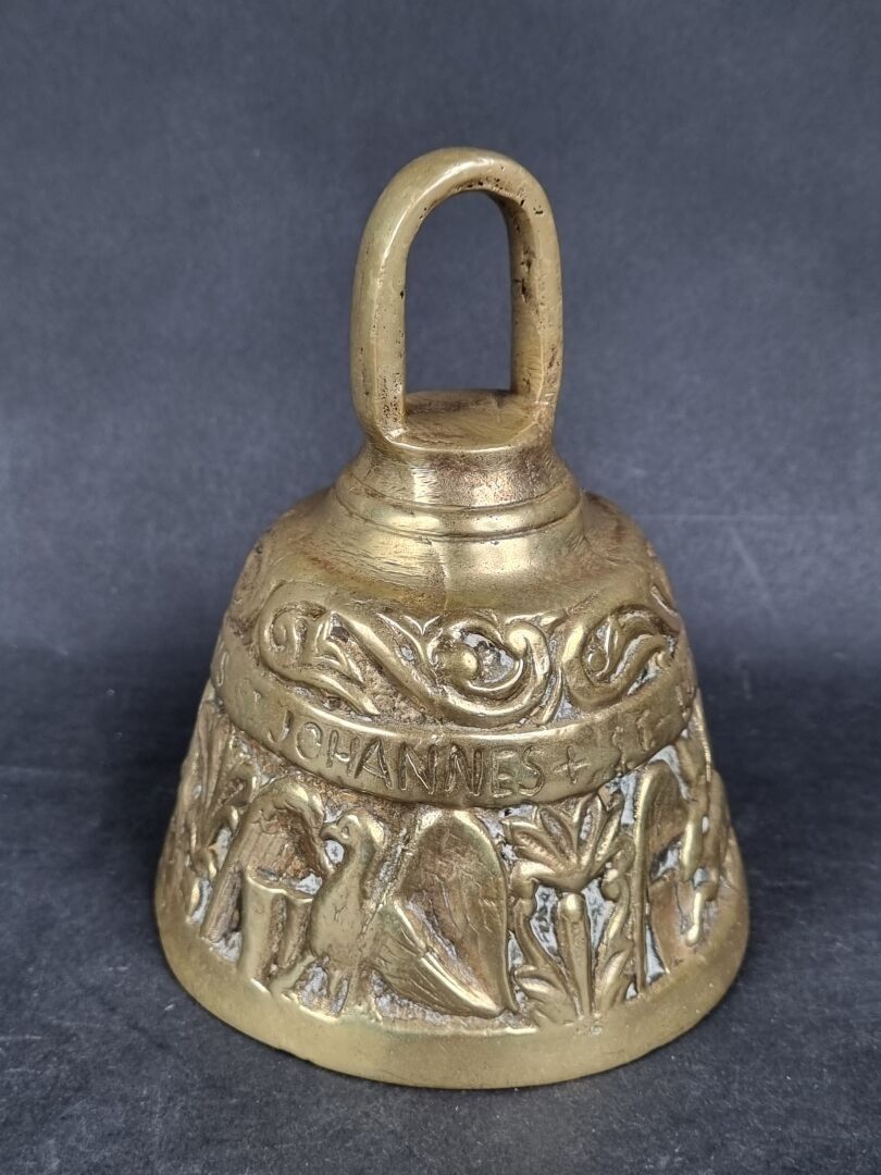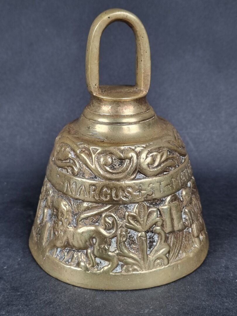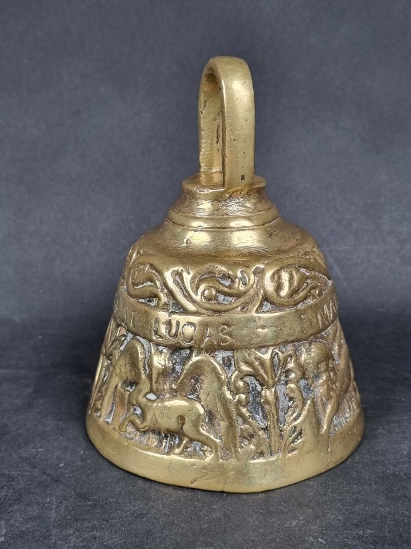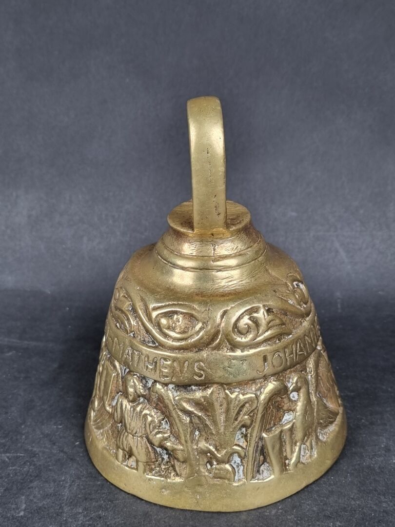 Gilded bronze bell decorated with the four Evangelists (H: 14.5 cm, diam: 11 cm)
