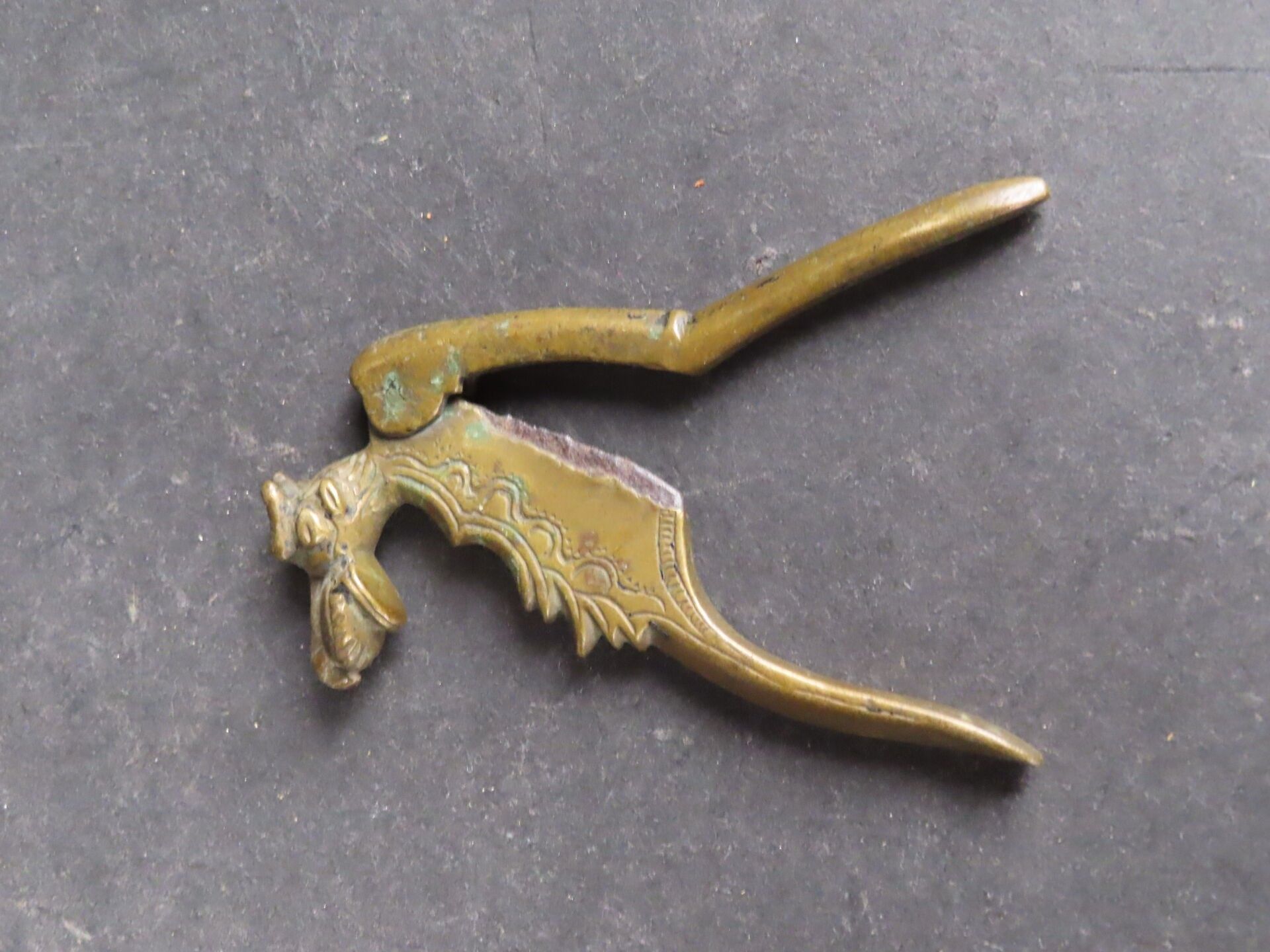 - 1 brass betel nut bowl decorated with the head of a fantastic animal