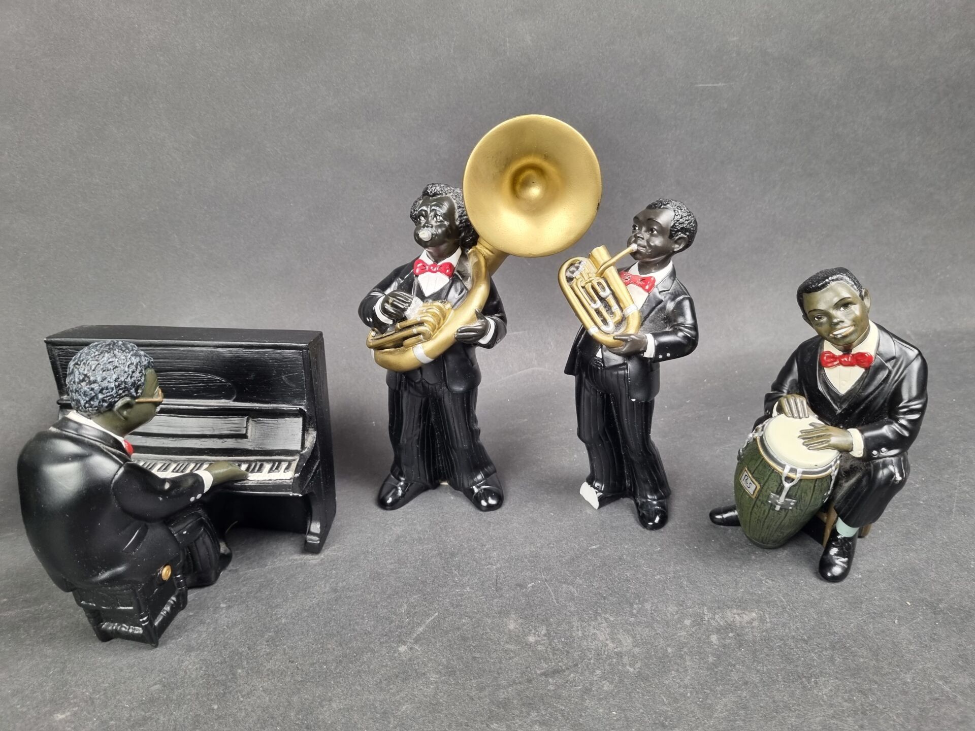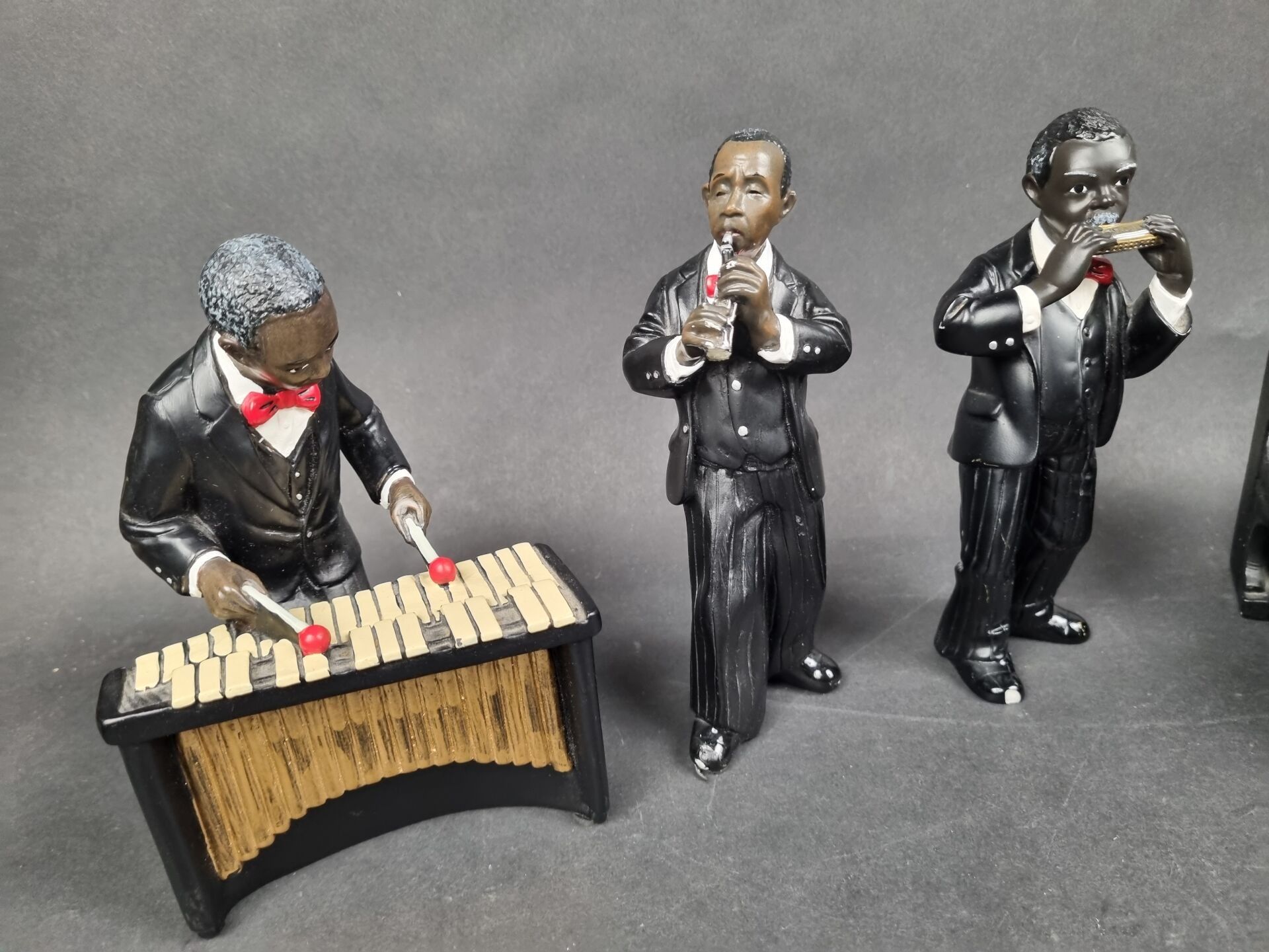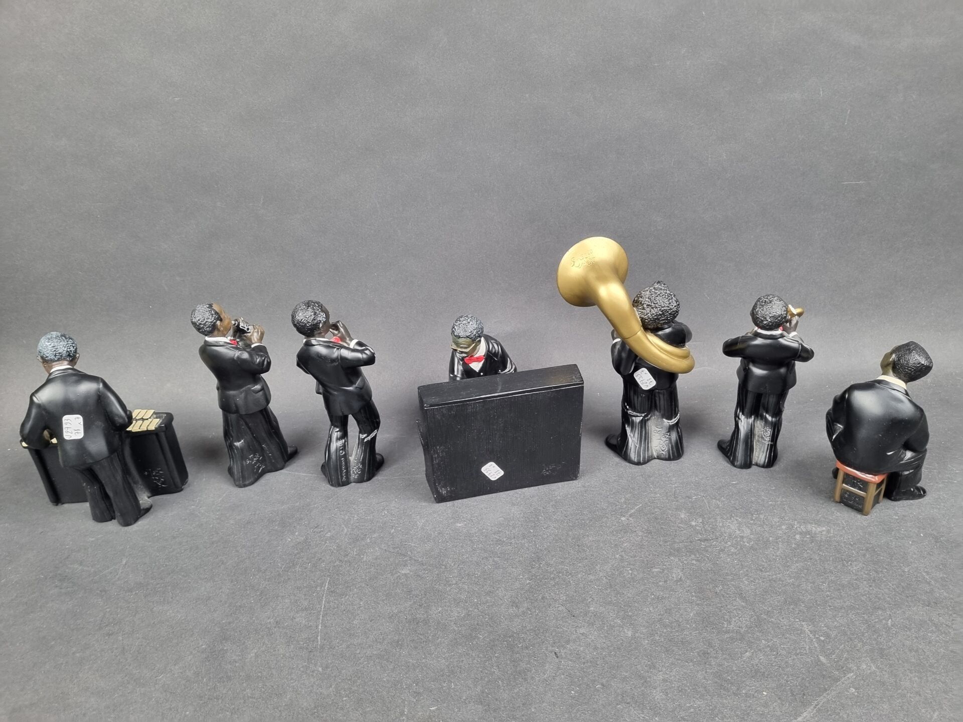 Batch of 7 jazz musicians, polychrome resin subjects (H: fro…