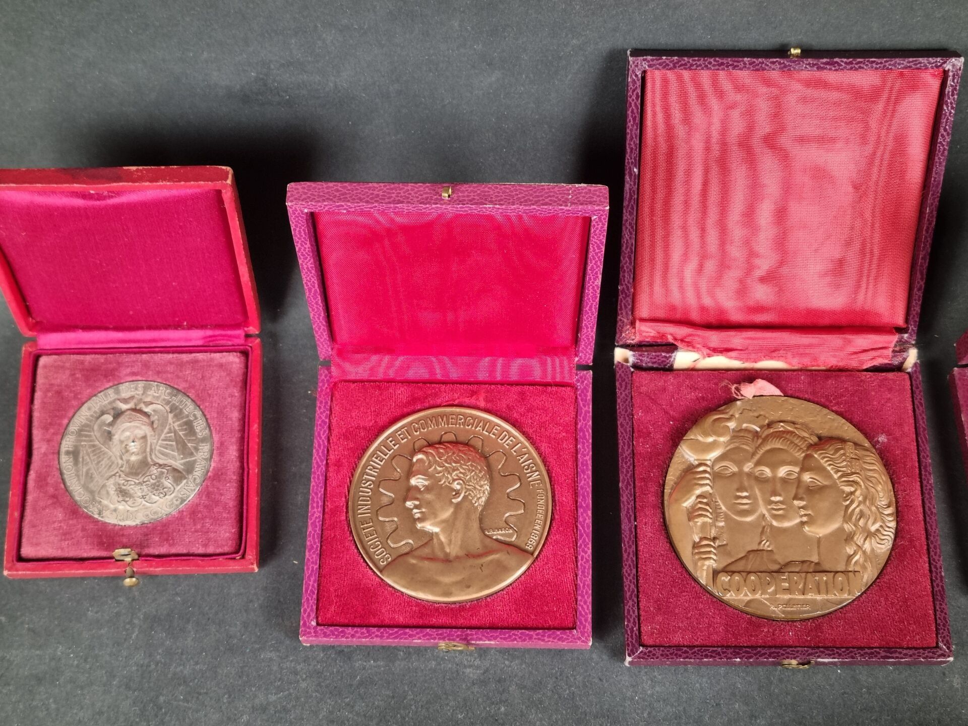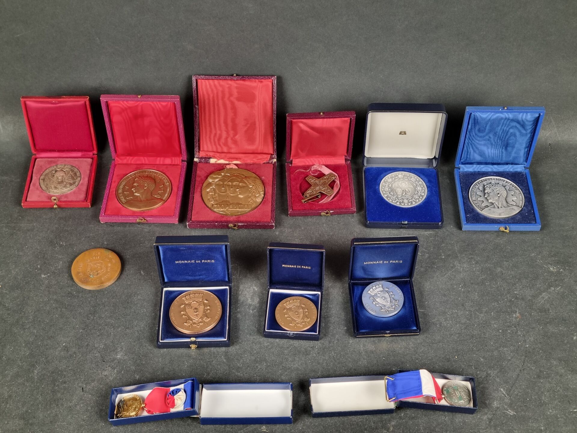 Batch of 12 various civil medals including "Coopération", 2 silver and vermeil labour medals, Association provinciale des architectes français, Société industrielle et commerciale de l'Aisne and others