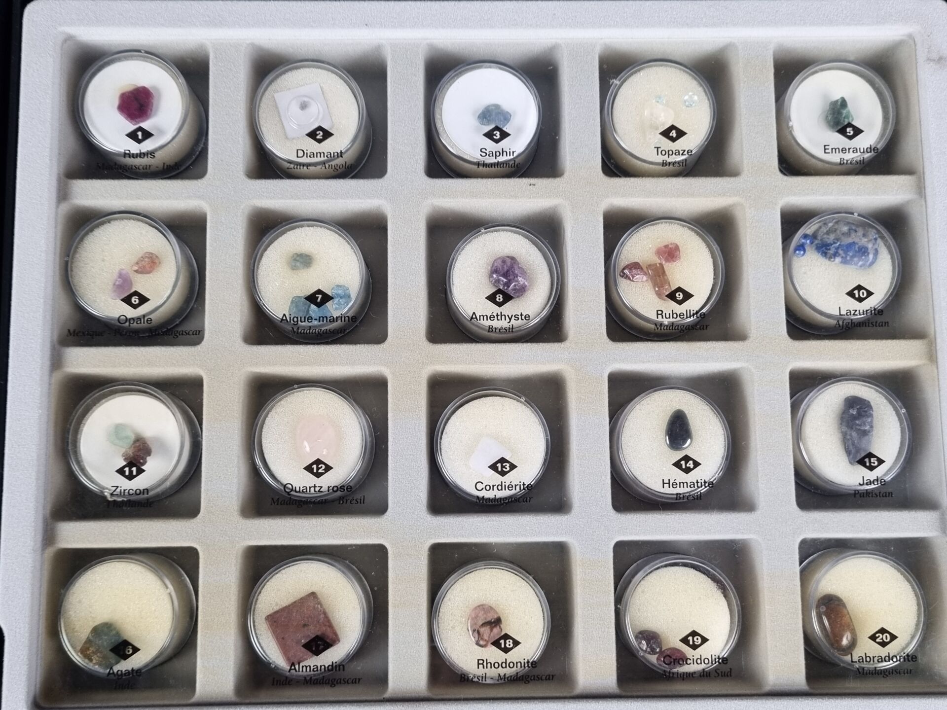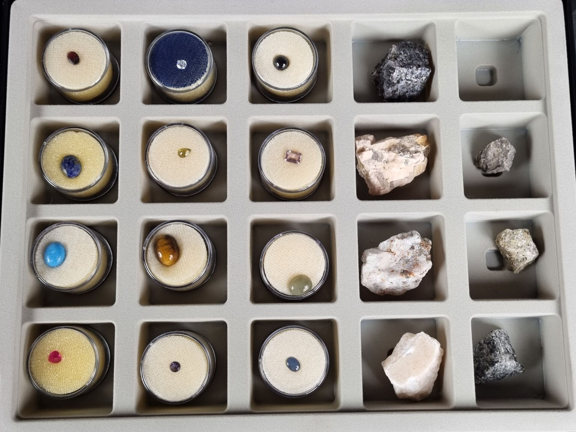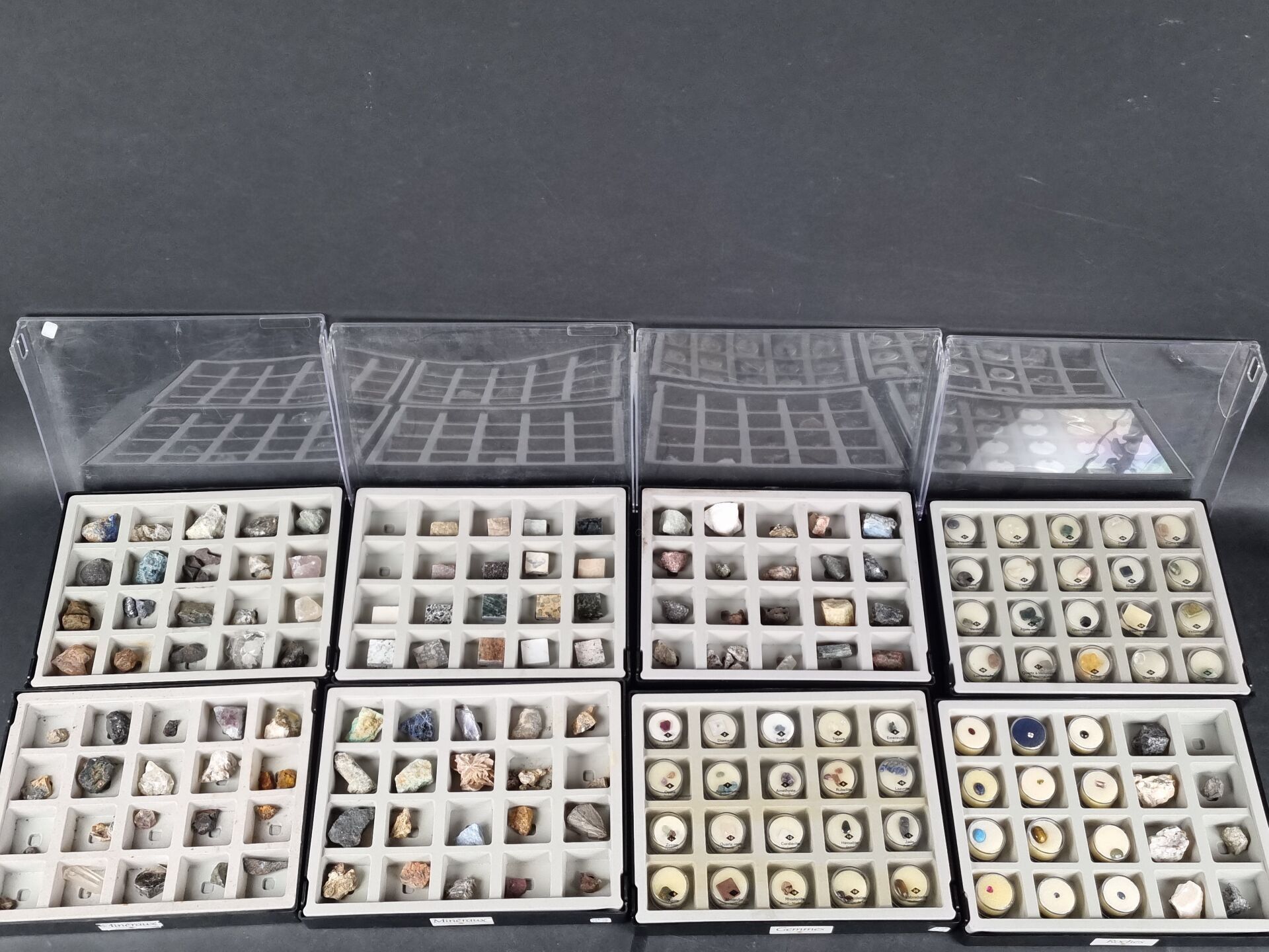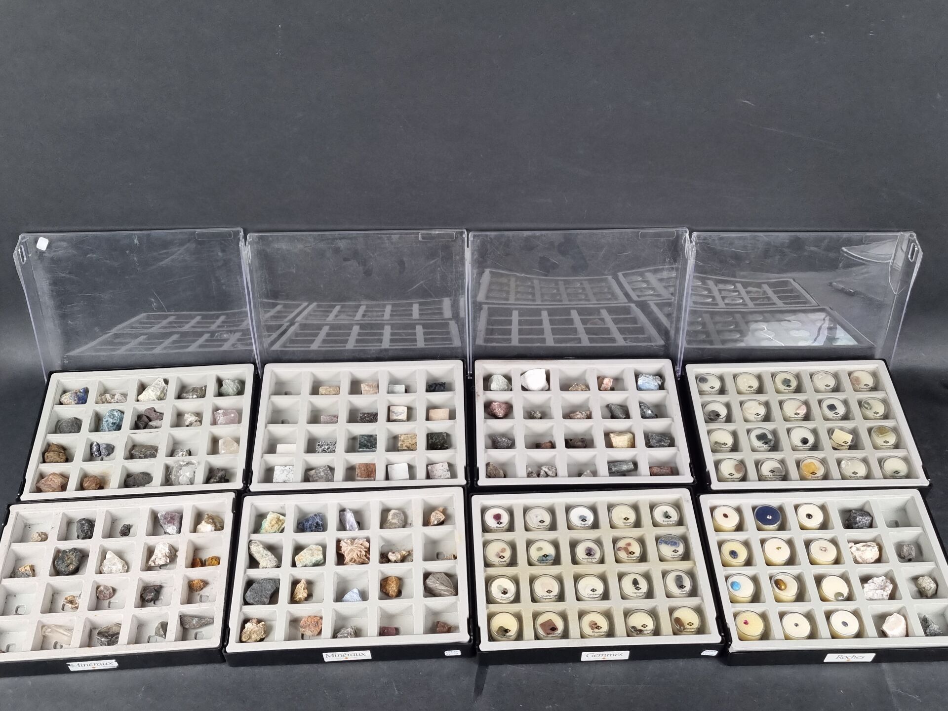 Set of 8 boxes containing 167 samples of various minerals and gems