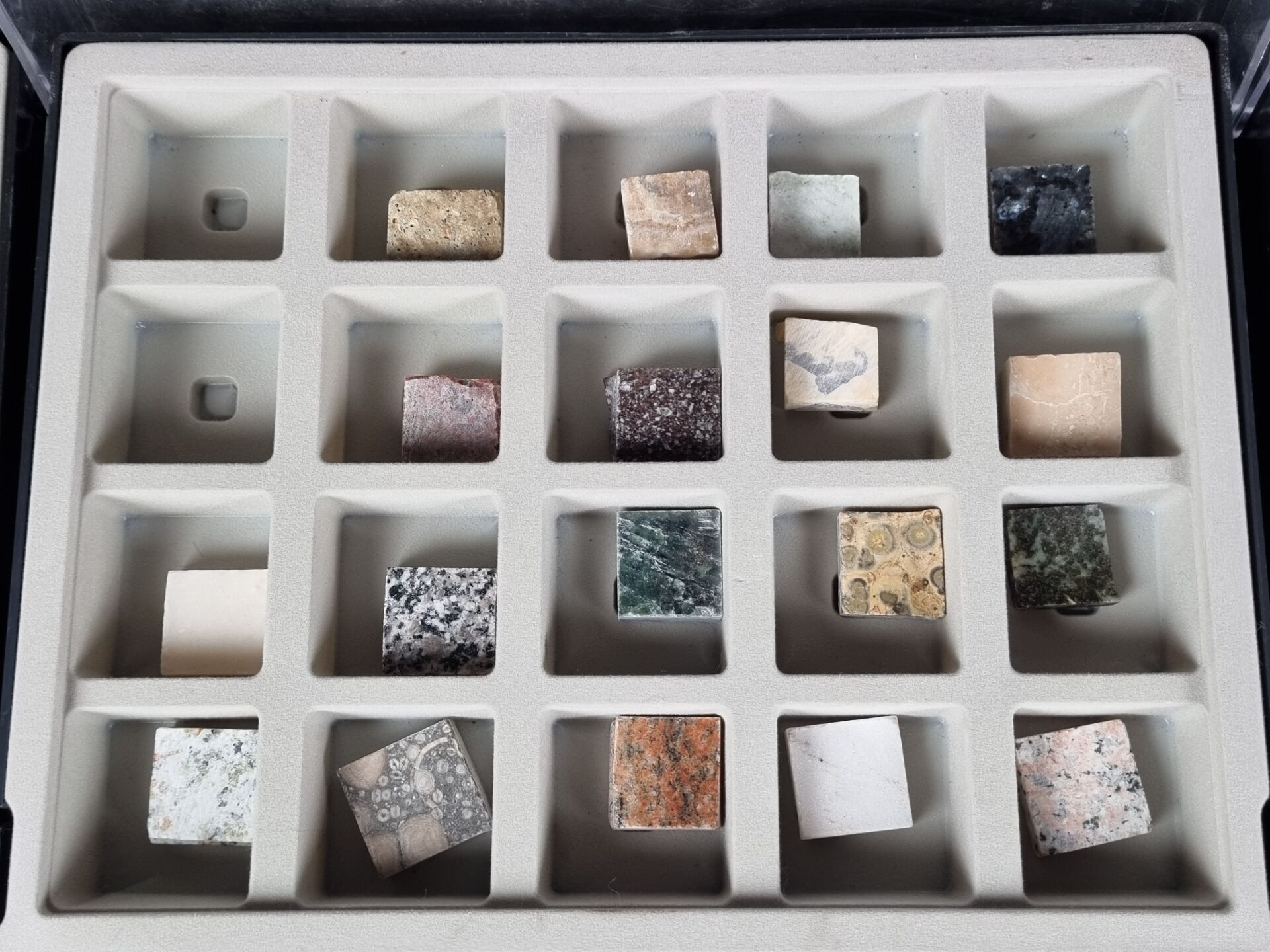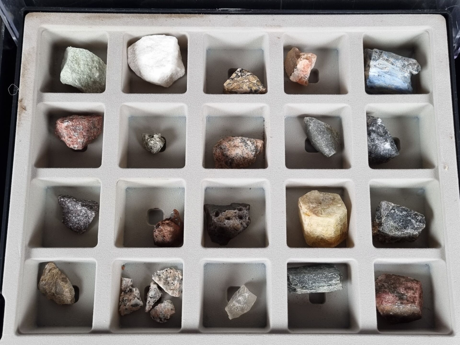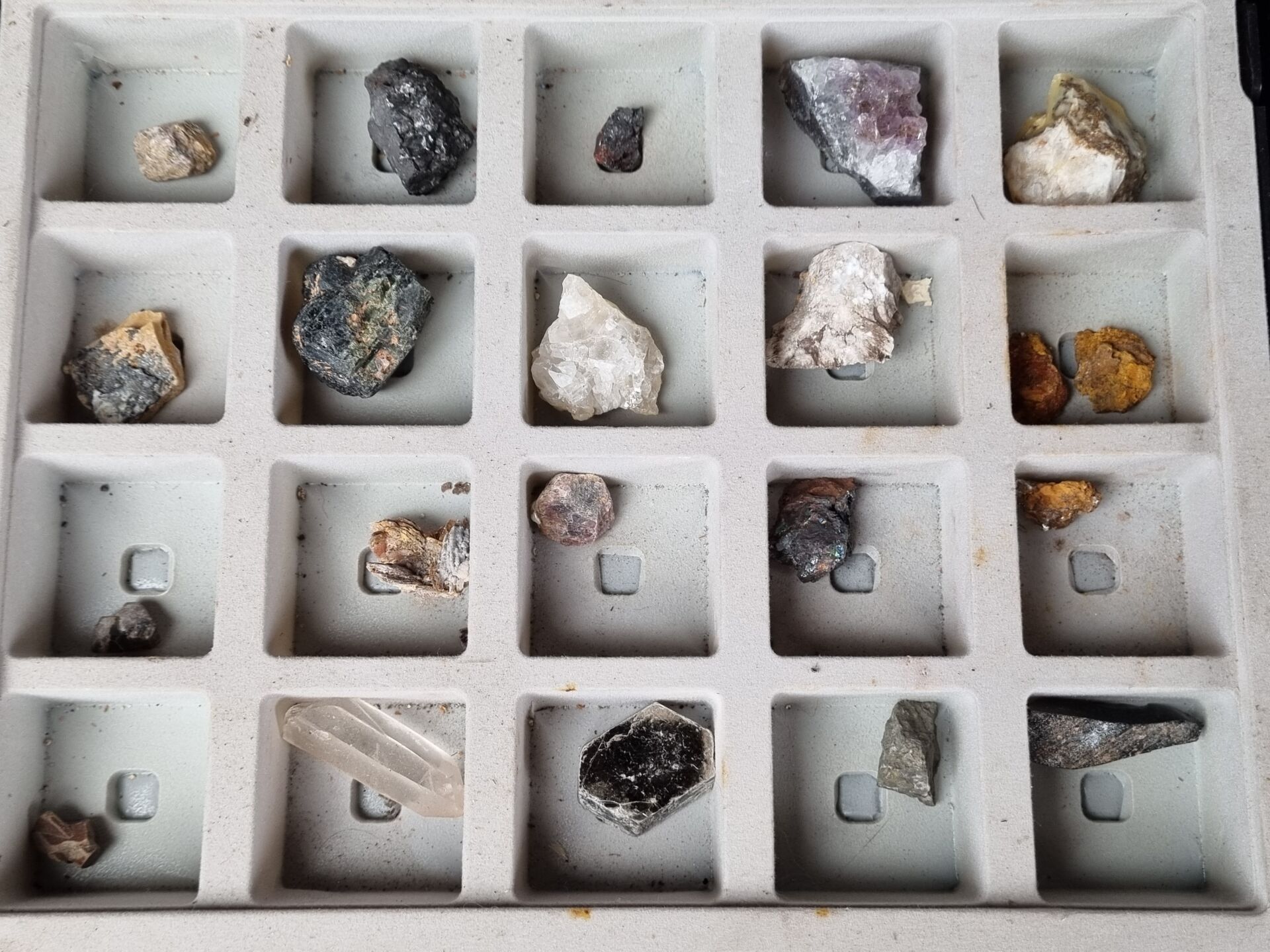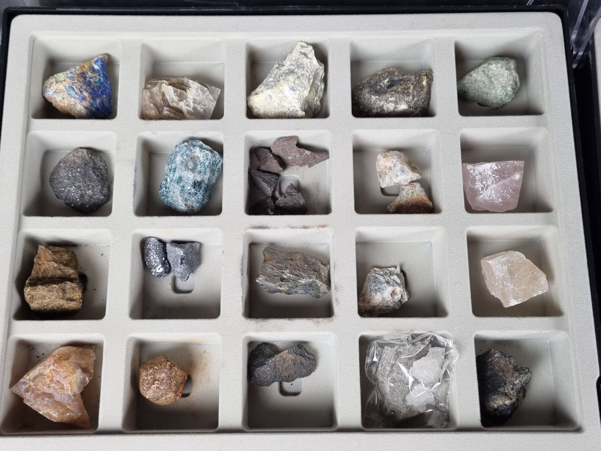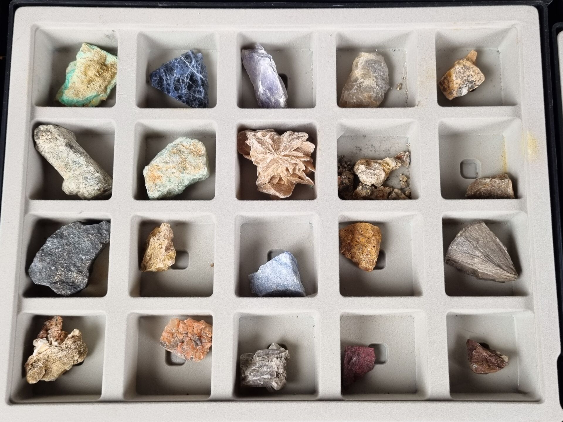 Set of 8 boxes containing 167 samples of various minerals and gems
