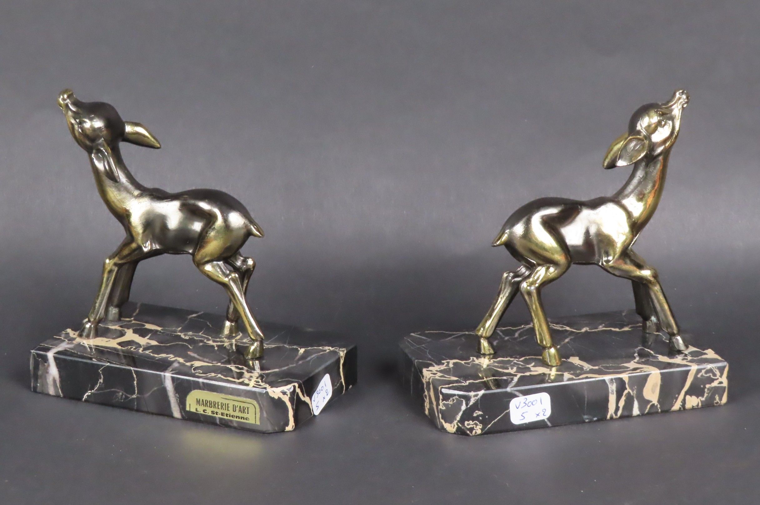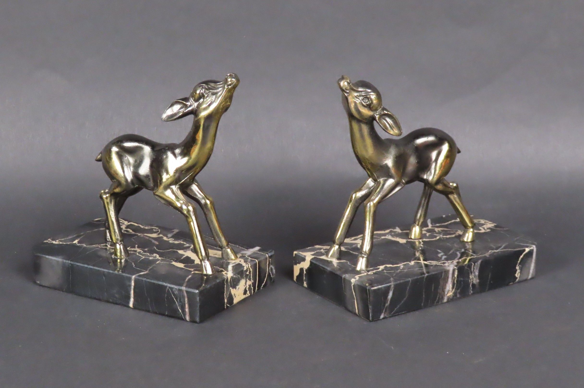 Pair of "fawn" bookends in patinated regula and Portor marbl…
