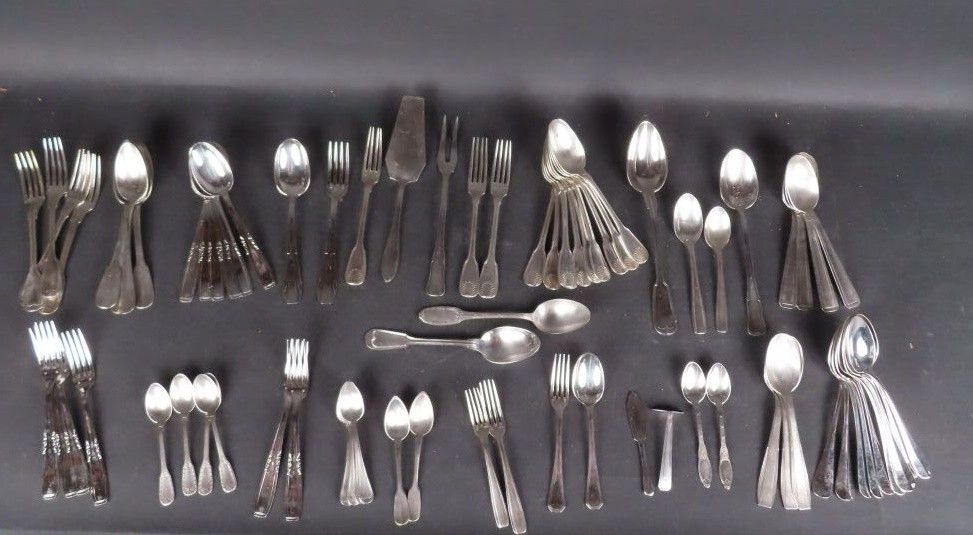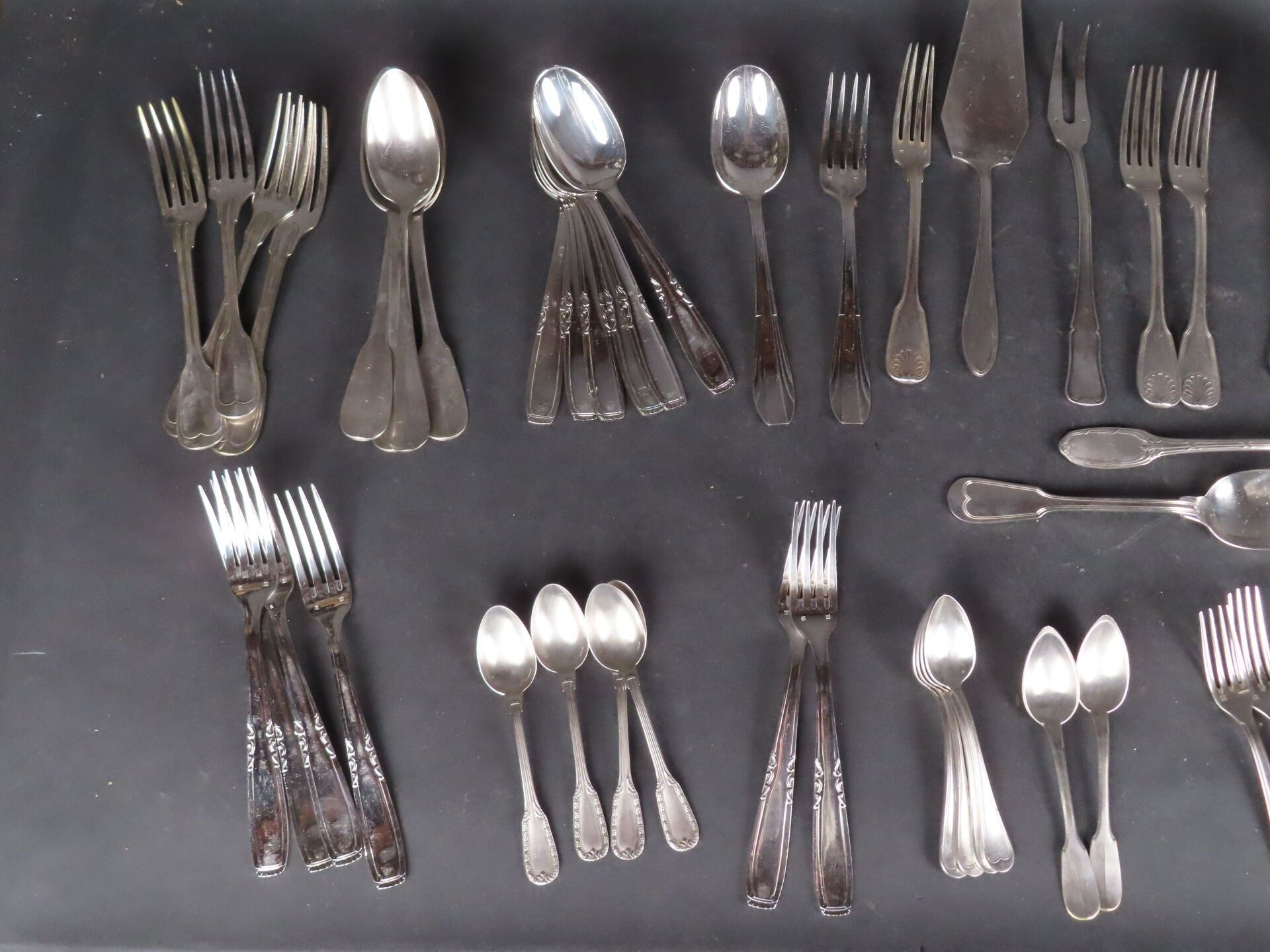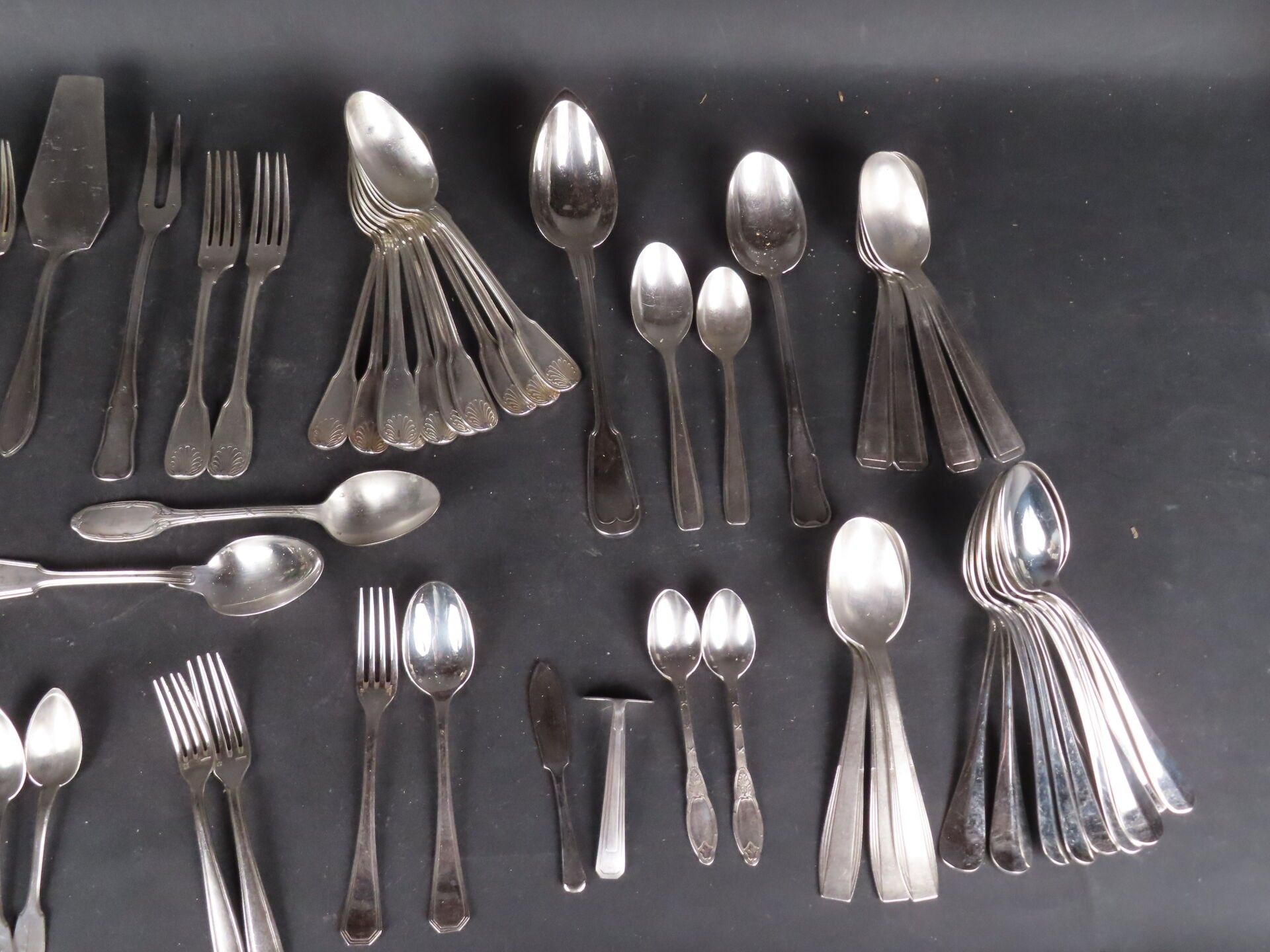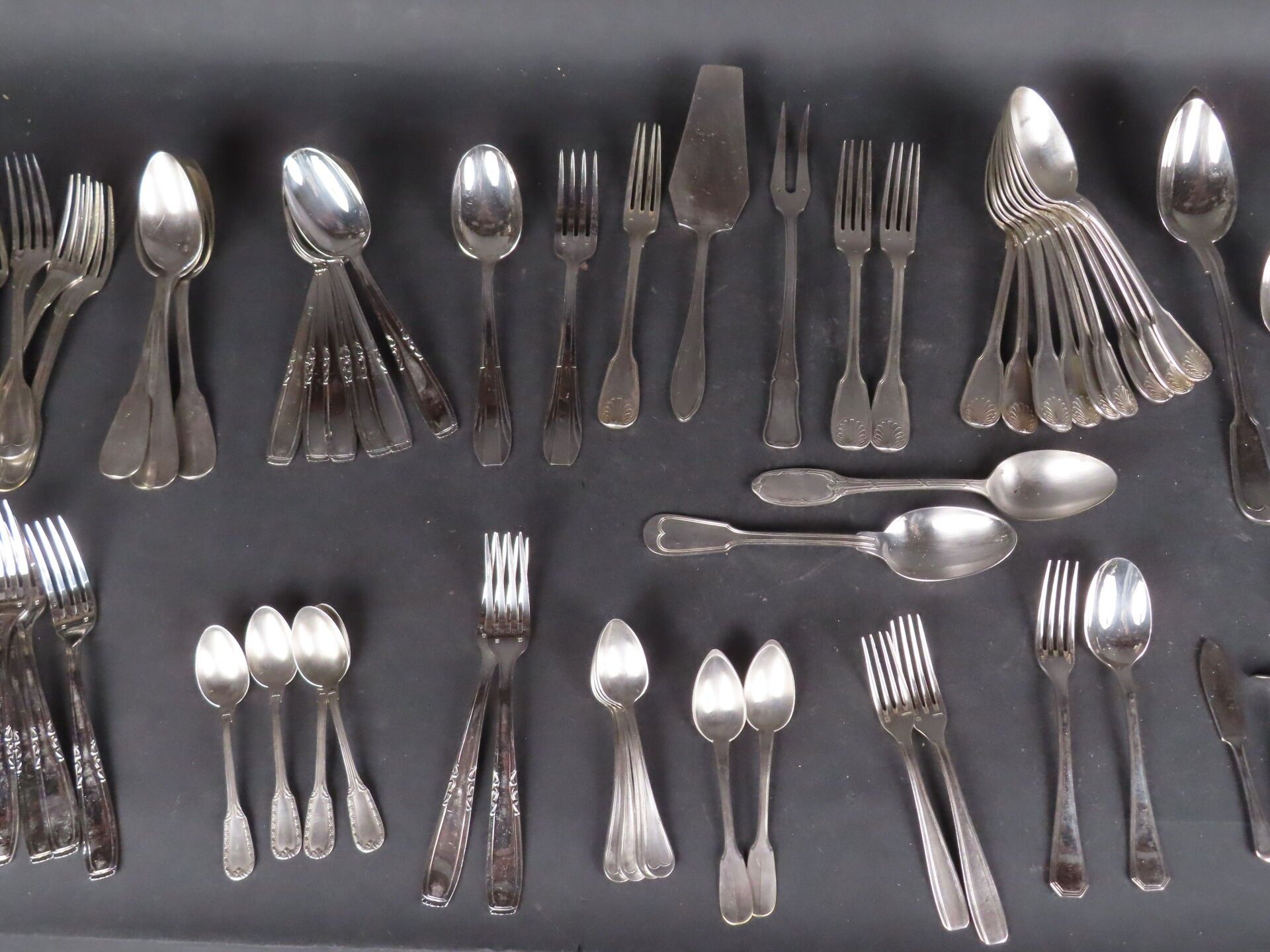 A large set of silver-plated cutlery, several odd pieces of cutlery, serving cutlery (a few scratches).