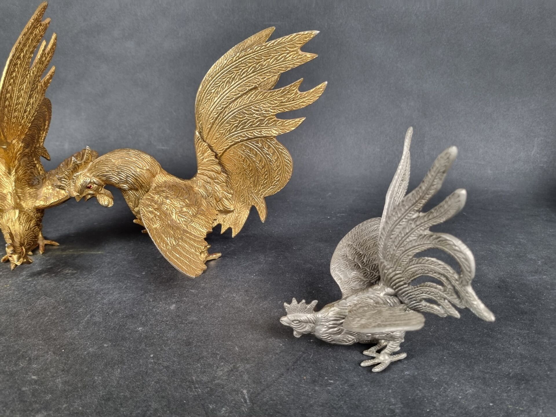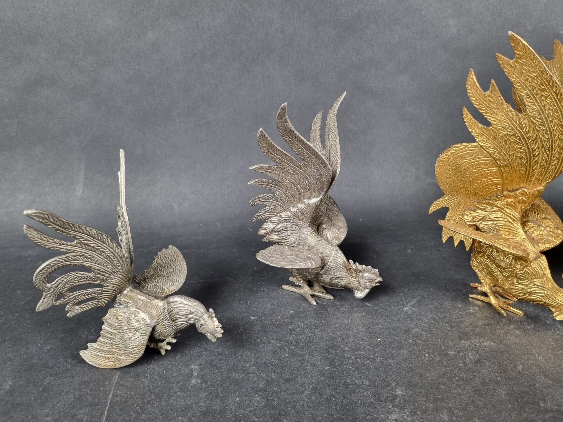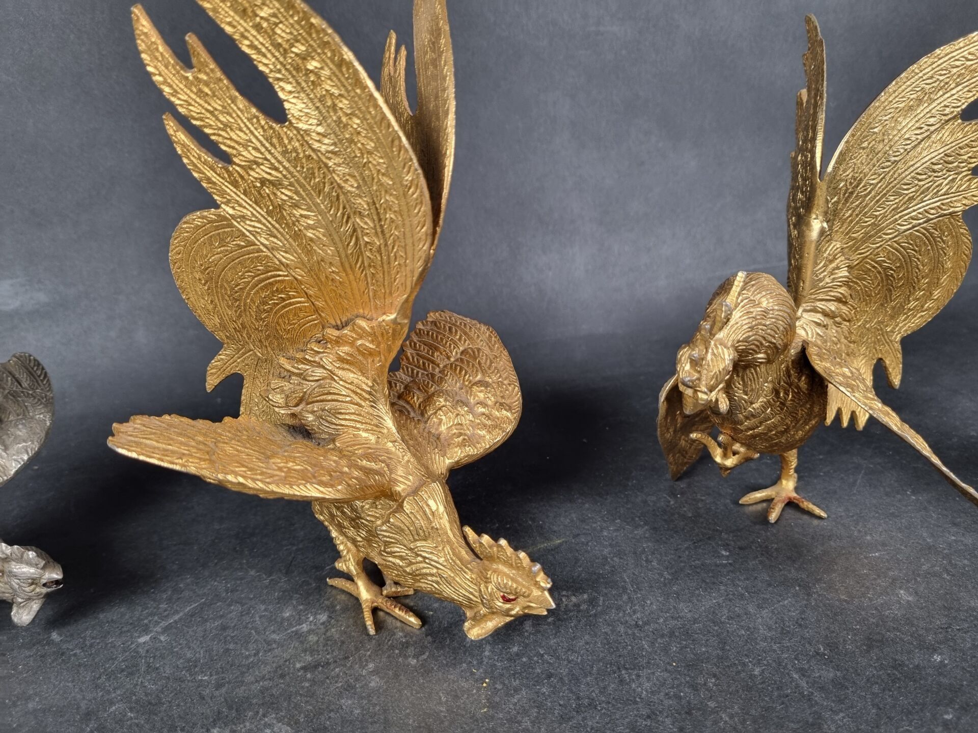 Batch of 5 "cockerel" table decorations in gilded and silvered metal