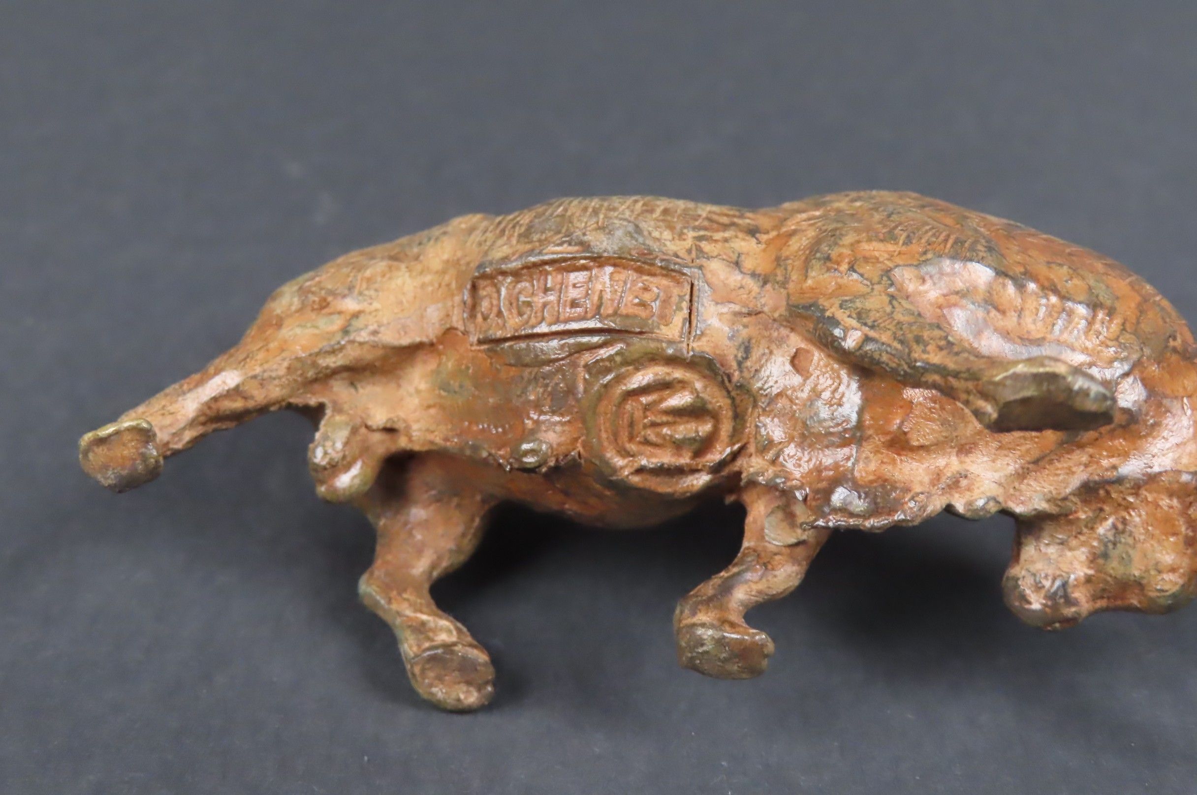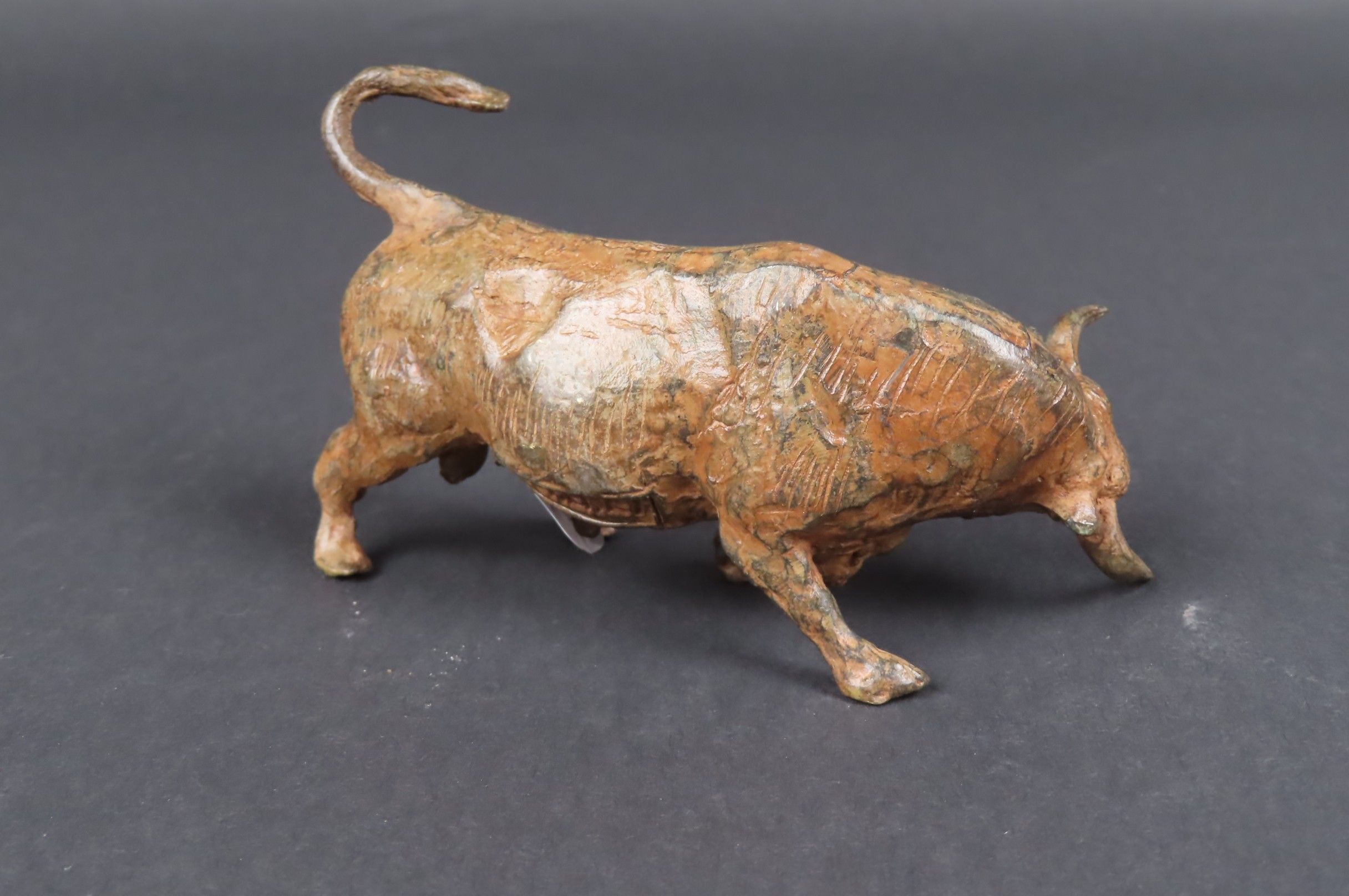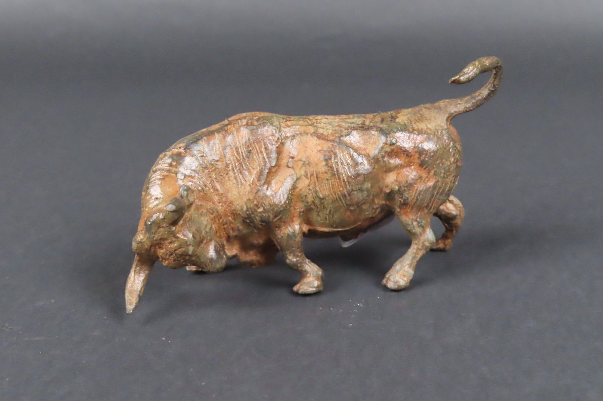 Pierre CHENET (XX-XXIth). "Charging bull", bronze subject with shaded patina, signed on the reverse (H: 6.5 cm; L: 10 cm)