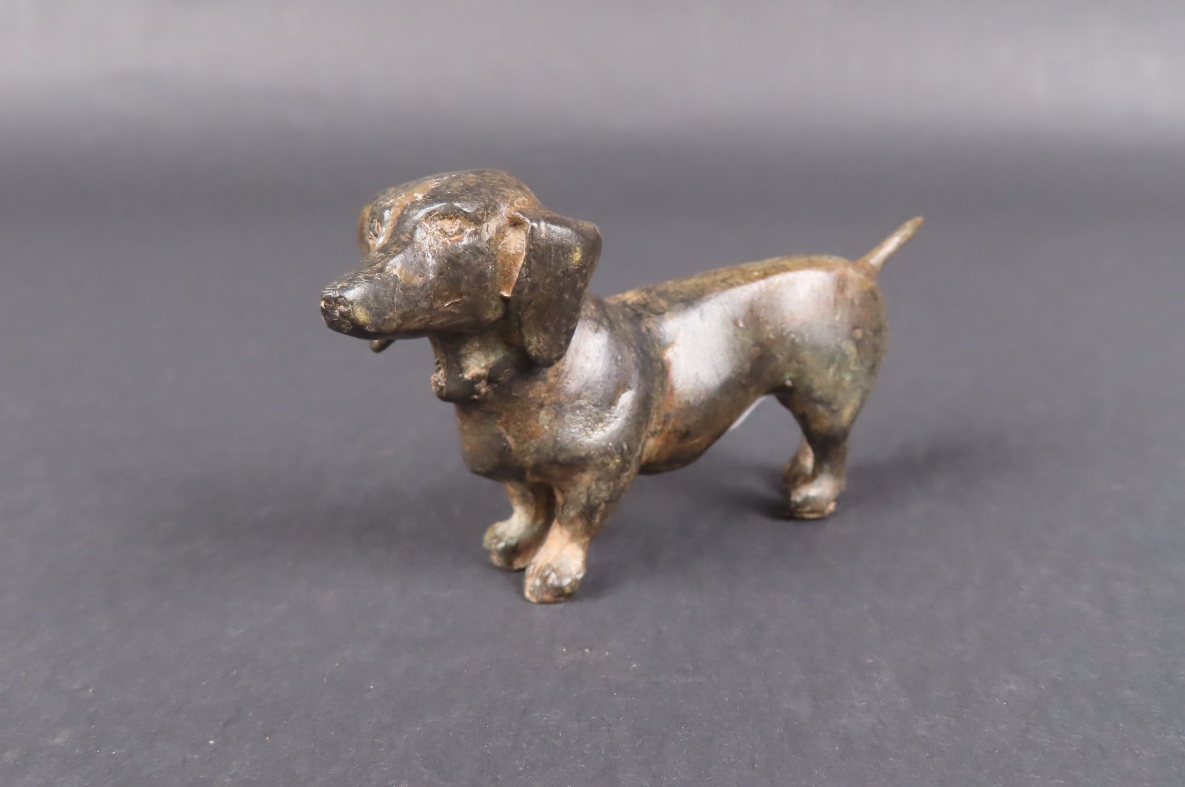 Pierre CHENET (XX-XXIth). "Dachshund", subject in bronze with shaded patina, signed on the reverse (H: 5.5 cm; L: 10.5 cm)