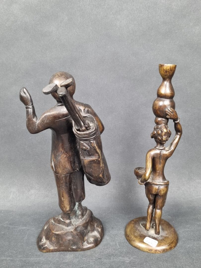 Set of 2 patinated bronze subjects: "The Golfer" (H: 25 cm) and "African Woman" (H: 25 cm)