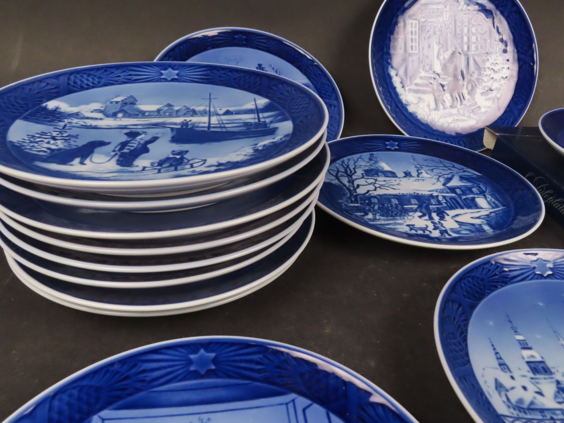 ROYAL COPENHAGEN. Suite of 15 Christmas-themed porcelain dessert plates, one box (diam: 18 cm)