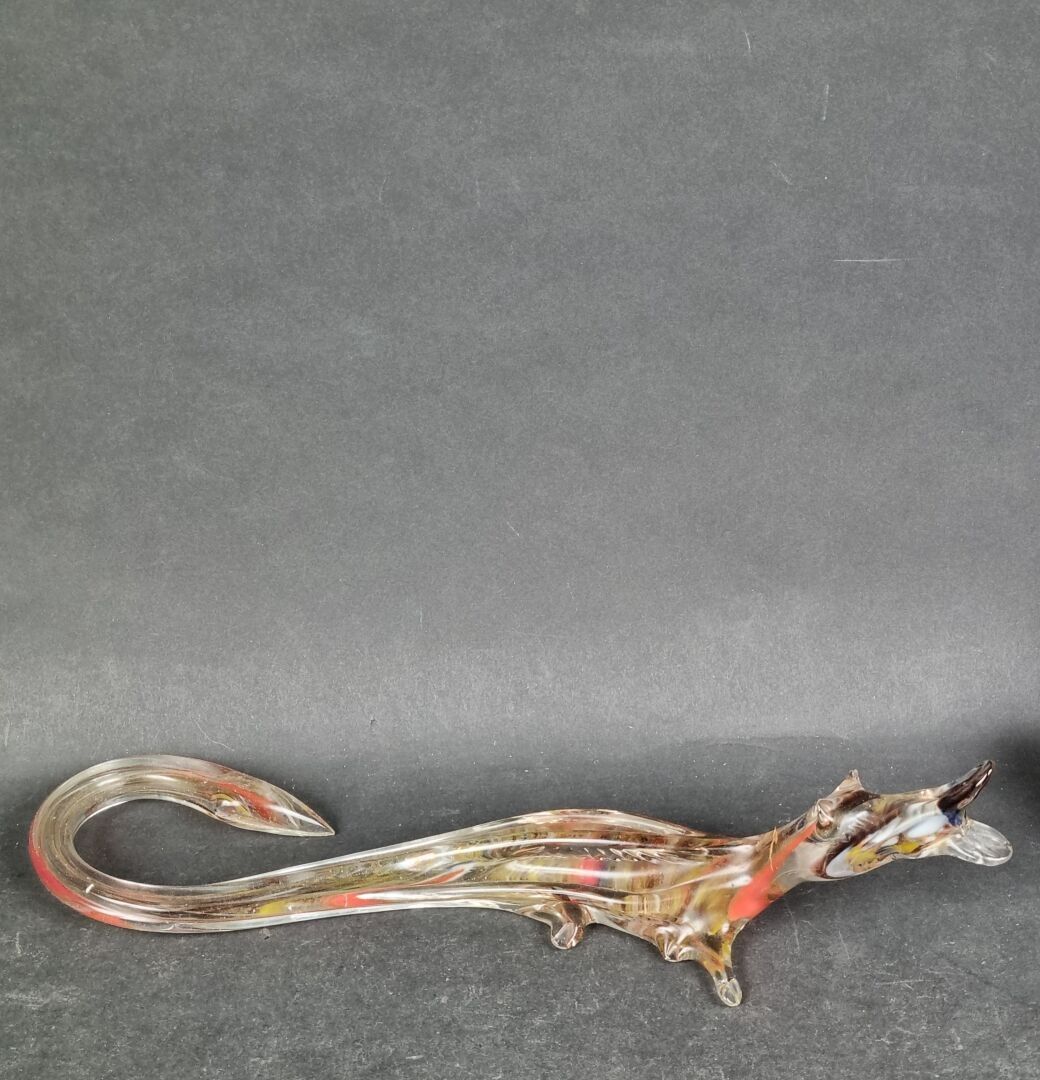 Glass subject with polychrome decoration representing a crocodile (L: 36 cm)