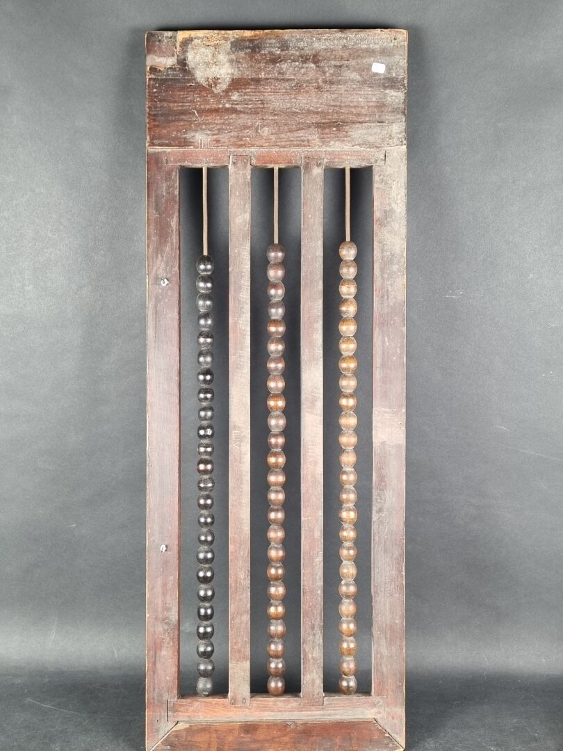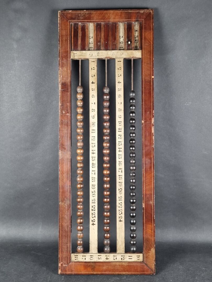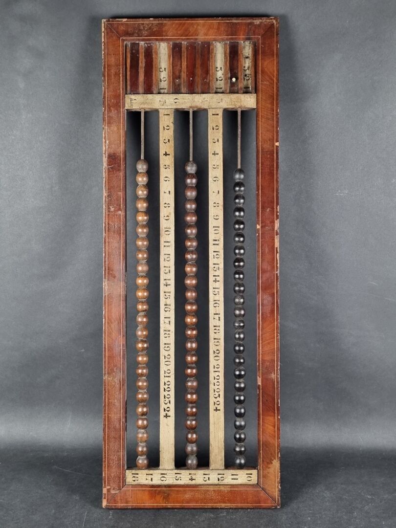 Old billiard abacus in wood and veneer (38 x 104.5 cm) (small missing parts)