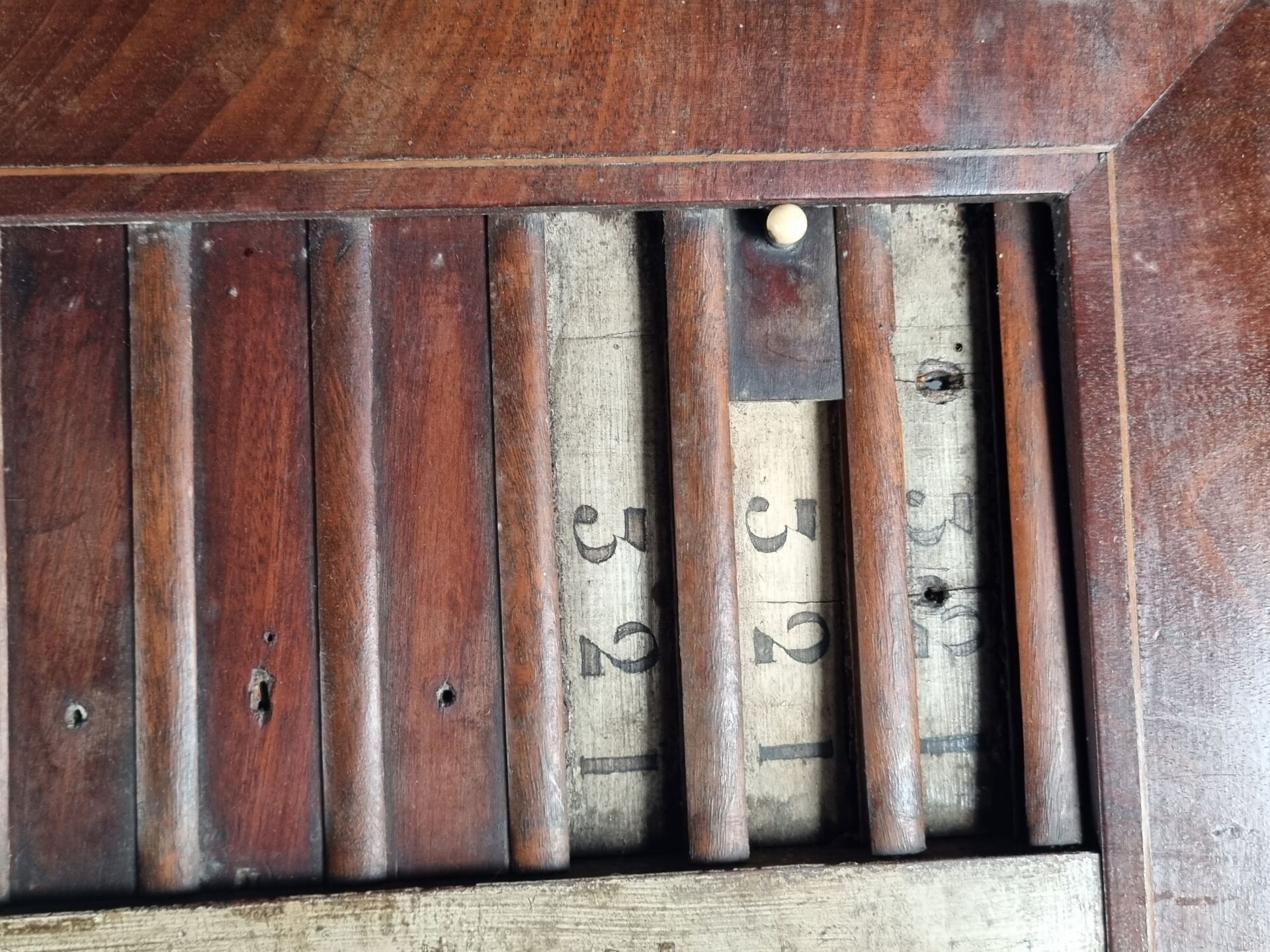 Old billiard abacus in wood and veneer (38 x 104.