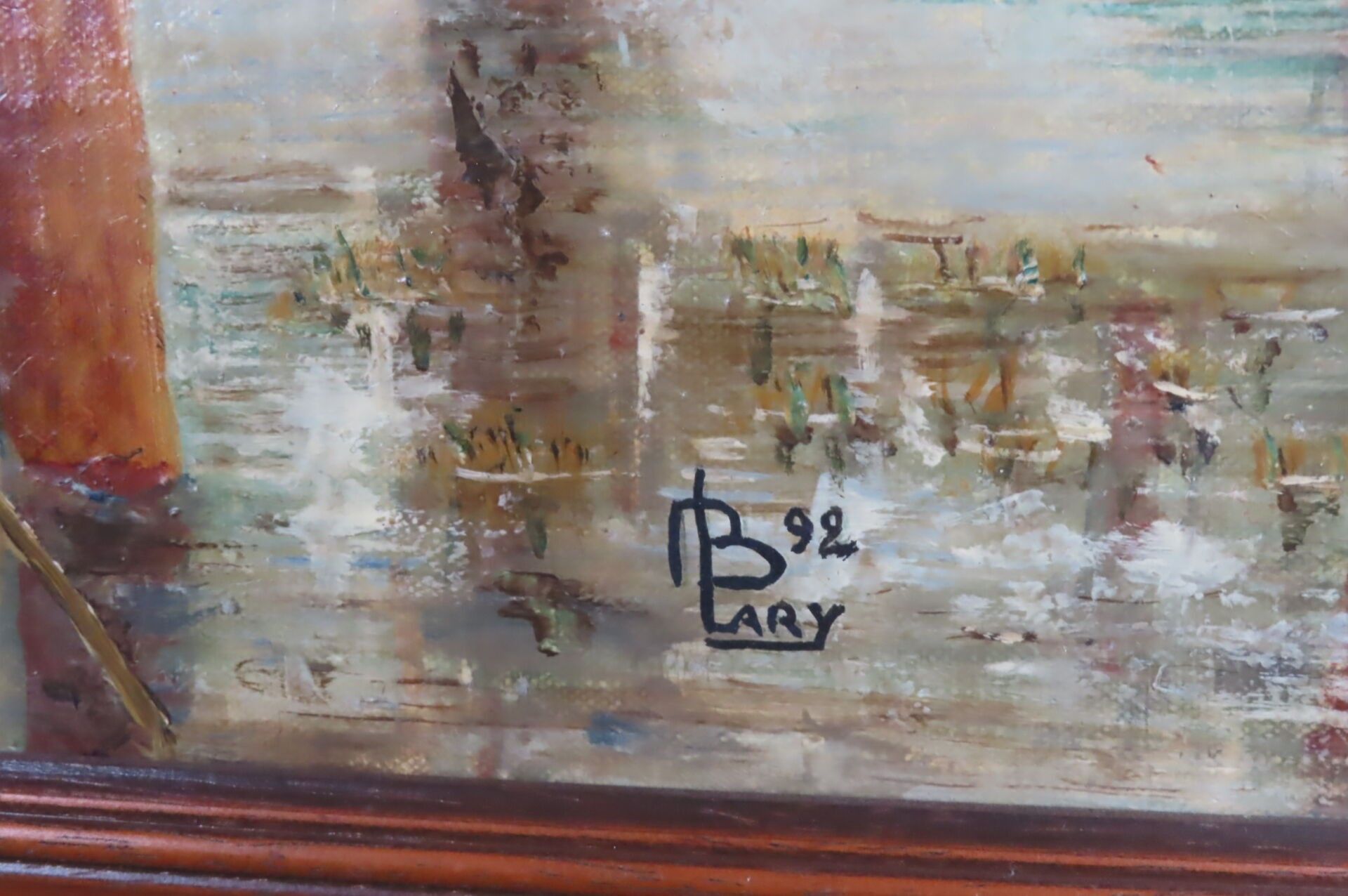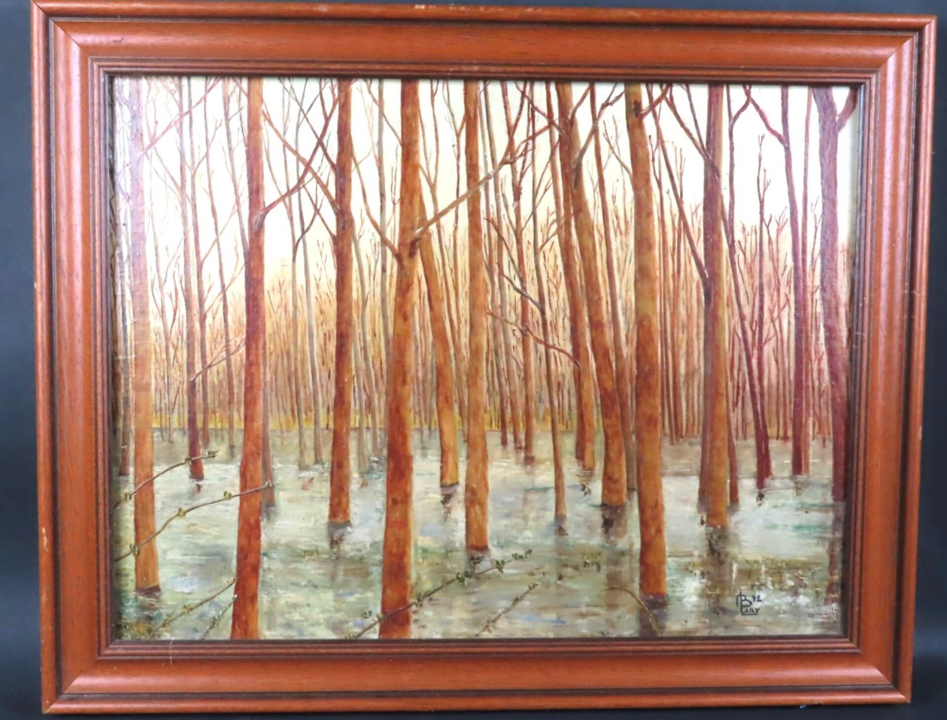 BLARY (XXth). "Flooded Forest", oil on canvas laid down on panel, signed lower right and dated '92' (46 x 61 cm)