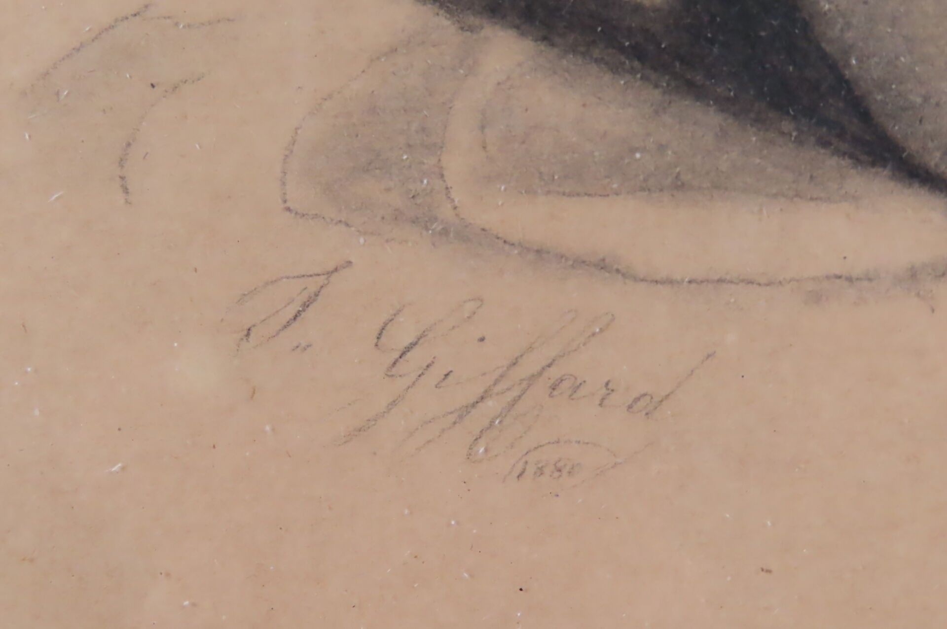 J. GIFFARD (XIXth). "Bébé assis sur un coussin", graphite dr…