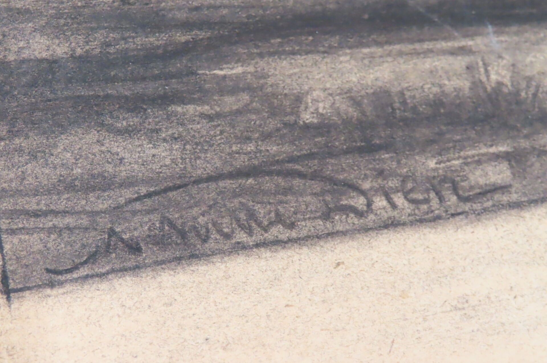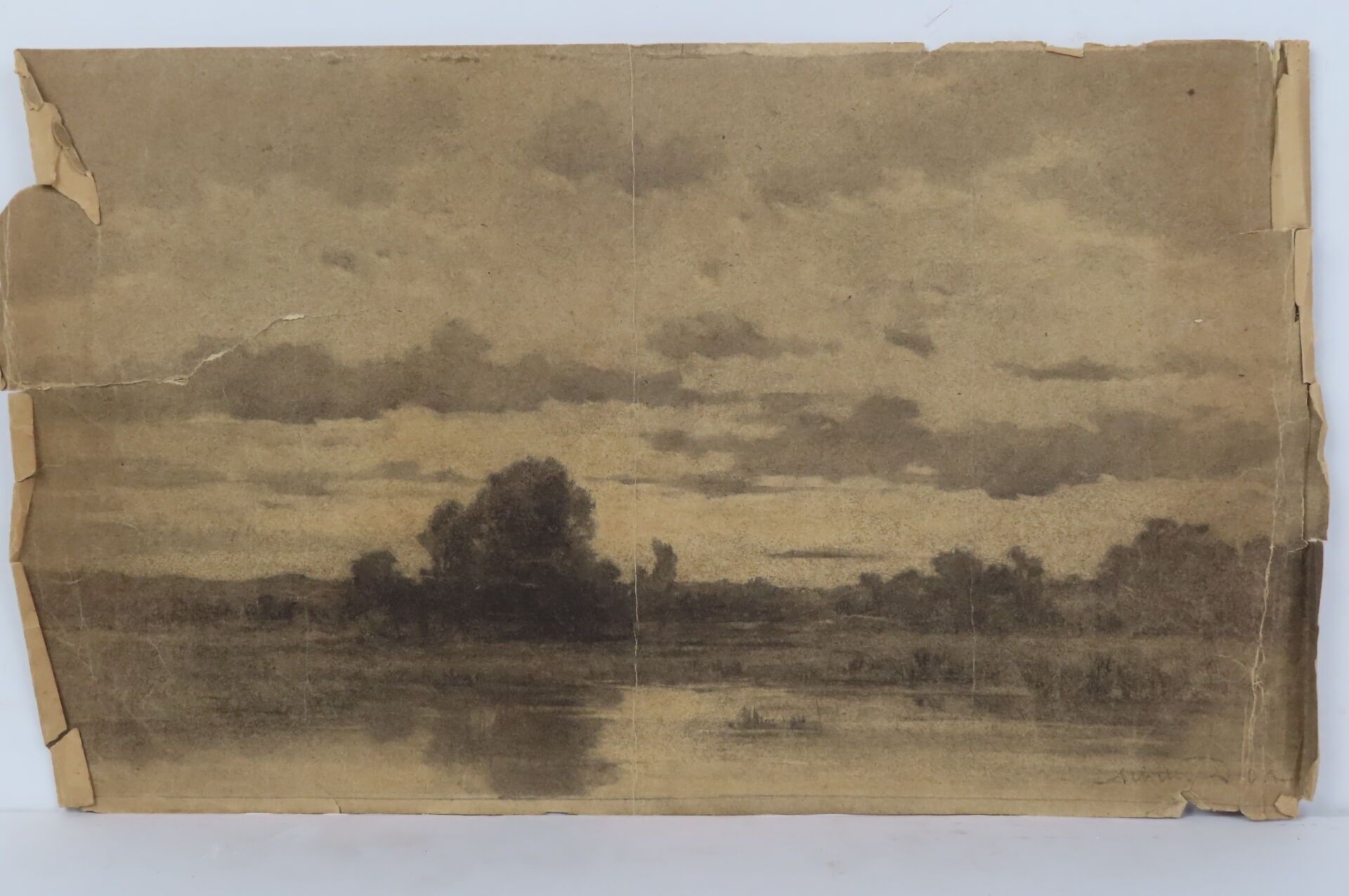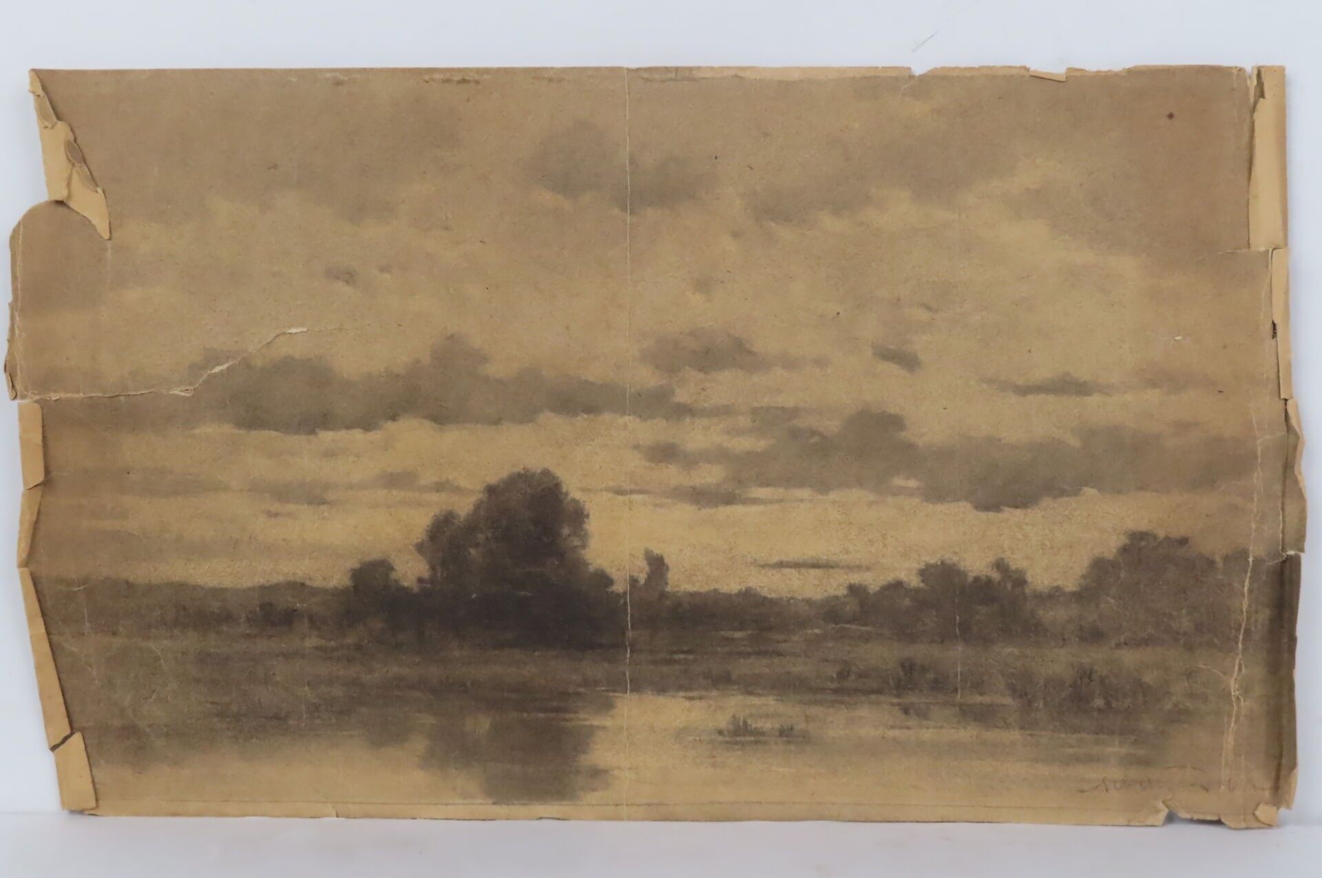 Achille DIEN (1832 - ?). "Paysages de marais", pair of charcoal drawings, signed lower right and left (25 x 36.5 cm and 25.5 x 43 cm) (folds, tears)