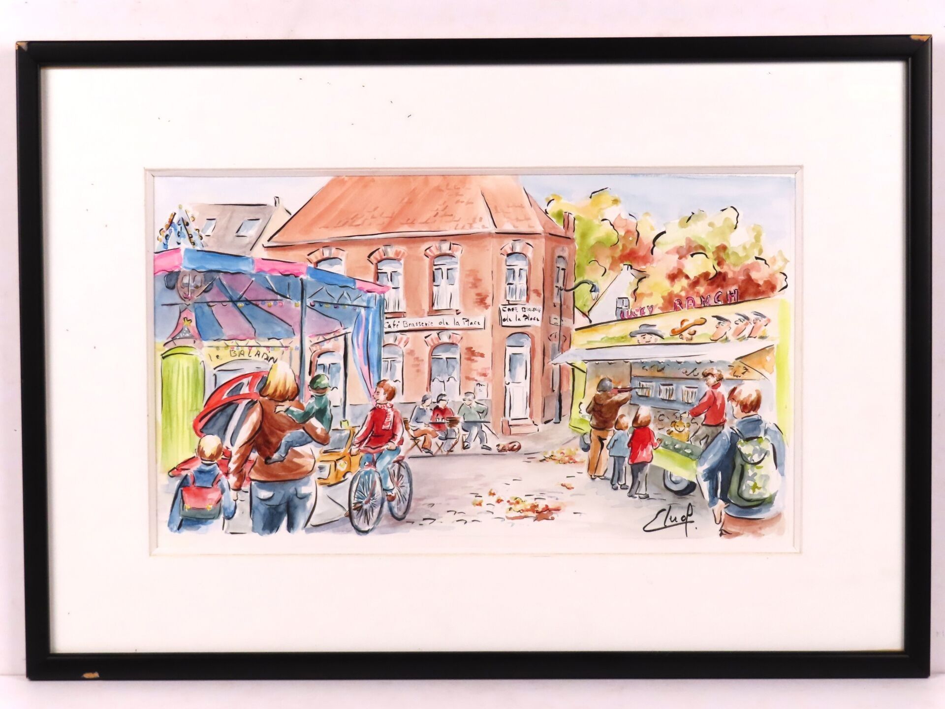 Evelyne LEROY-SENECHAL (20th). "La fête foraine", watercolour, signed lower right (view: 24 x 41 cm)