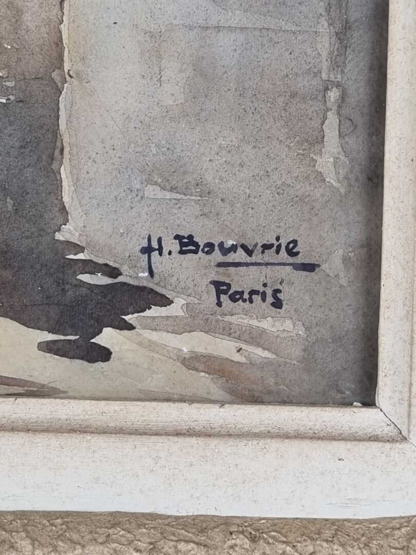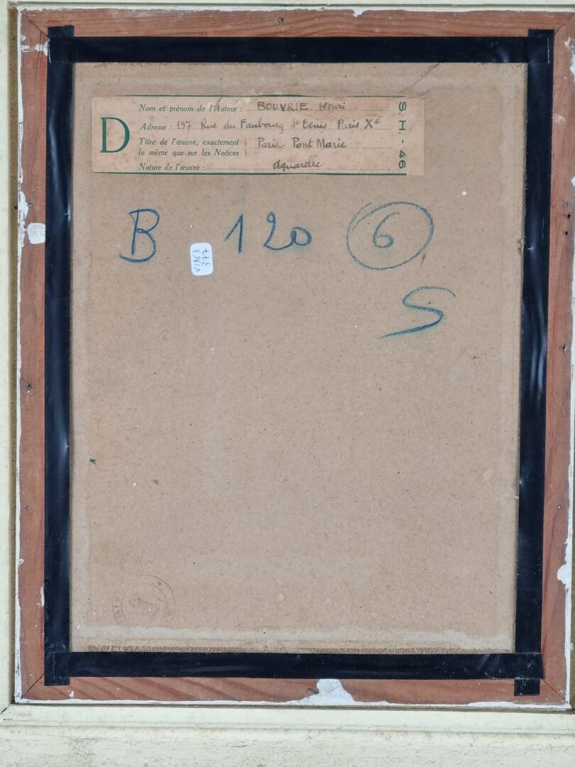 Henri BOUVRIE (1896-1973). "Le Pont Marie à Paris", watercolour, signed lower right (on view: 34 x 26 cm). Label on the reverse