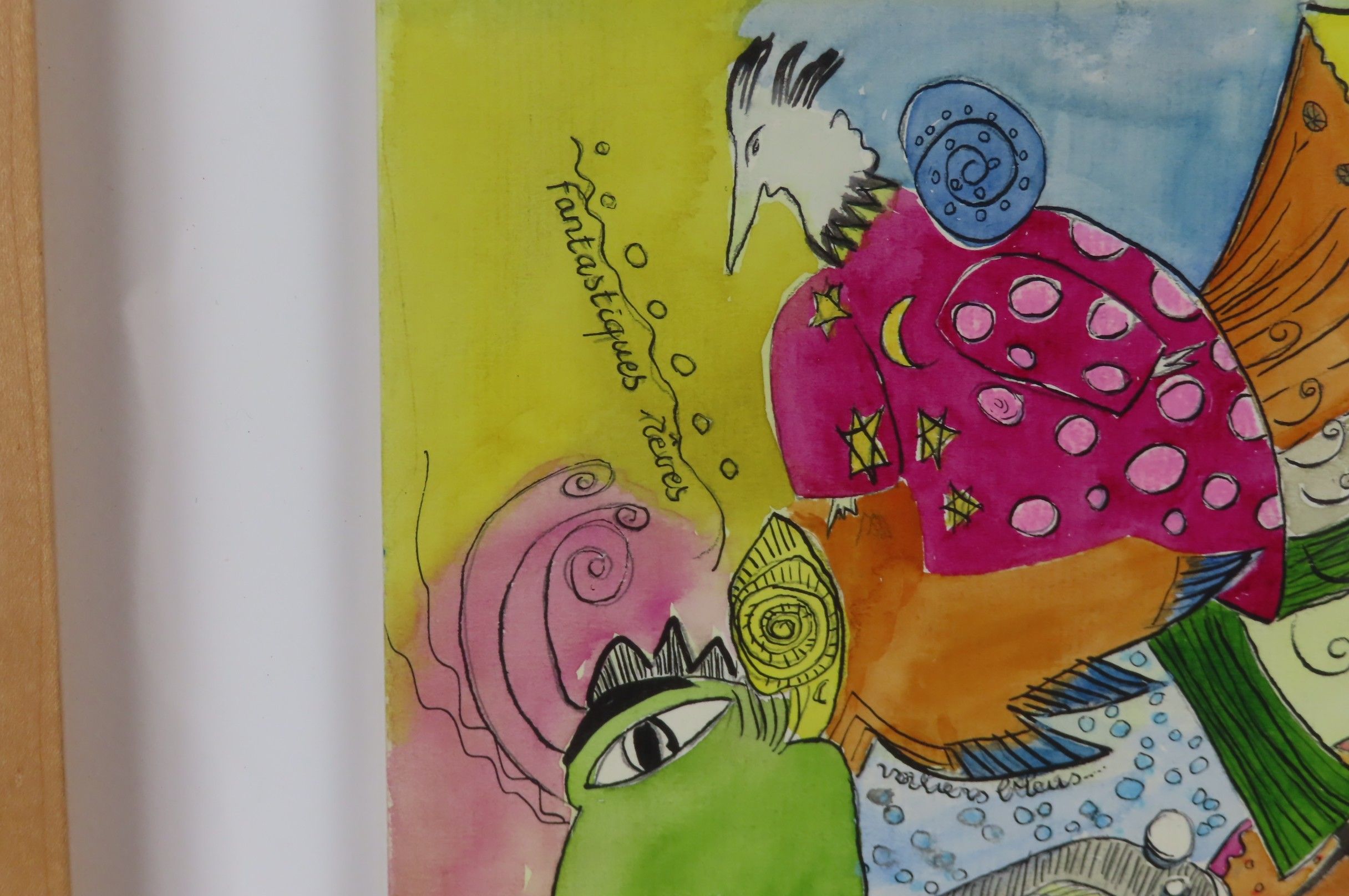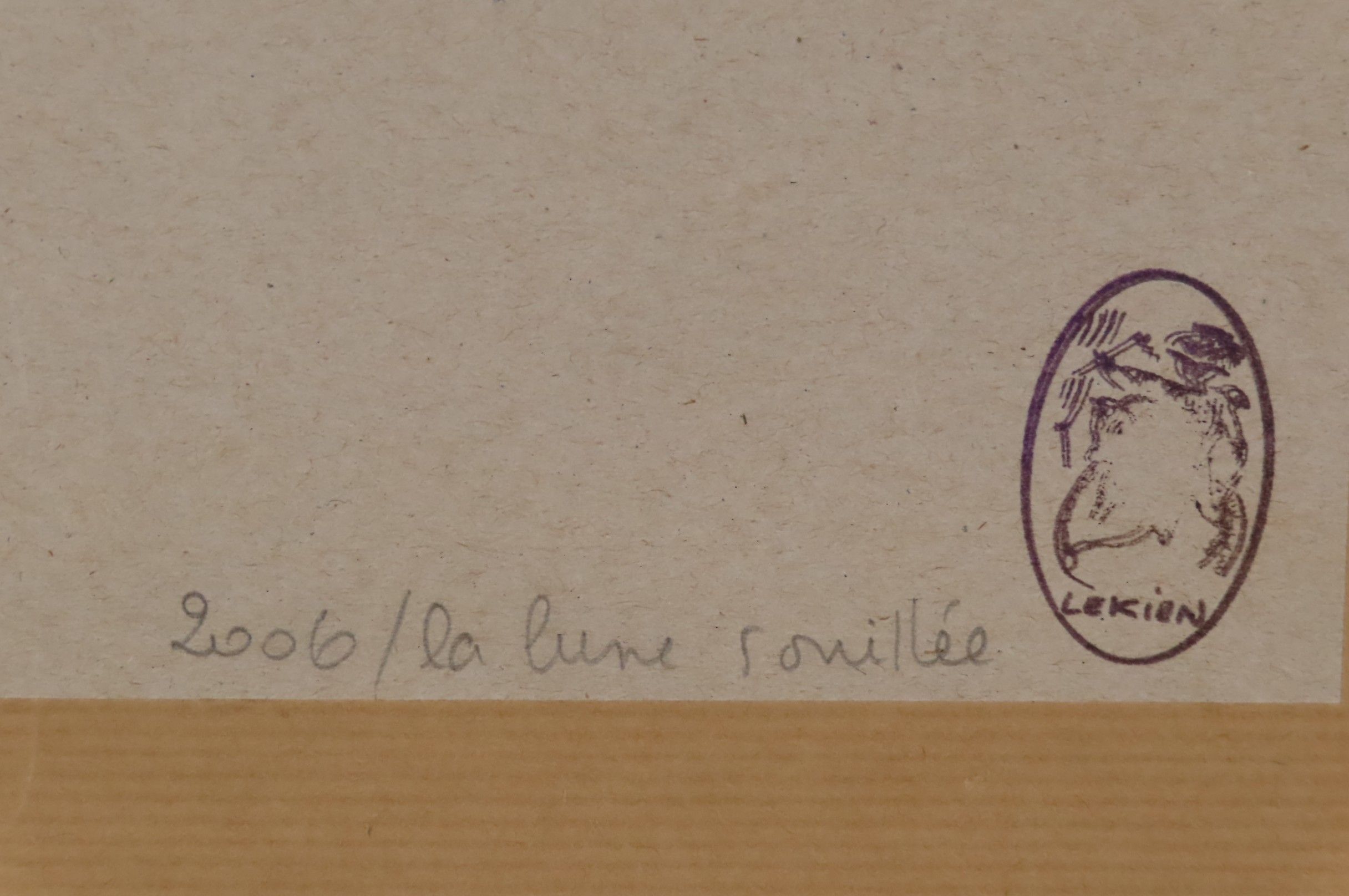 LEKIEN (XXth). "La Lune souillée", watercolour and ink, titled and signed on the reverse (with frame: 36 x 36 cm)