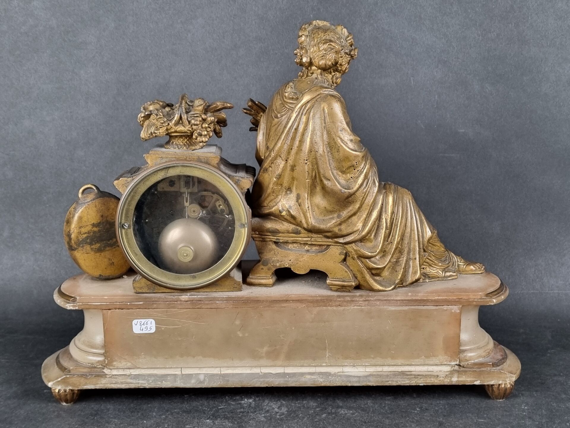 A gilt regule and onyx clock, the dial with Roman numerals and an allegory of agriculture (H: 32 cm, W: 41 cm)