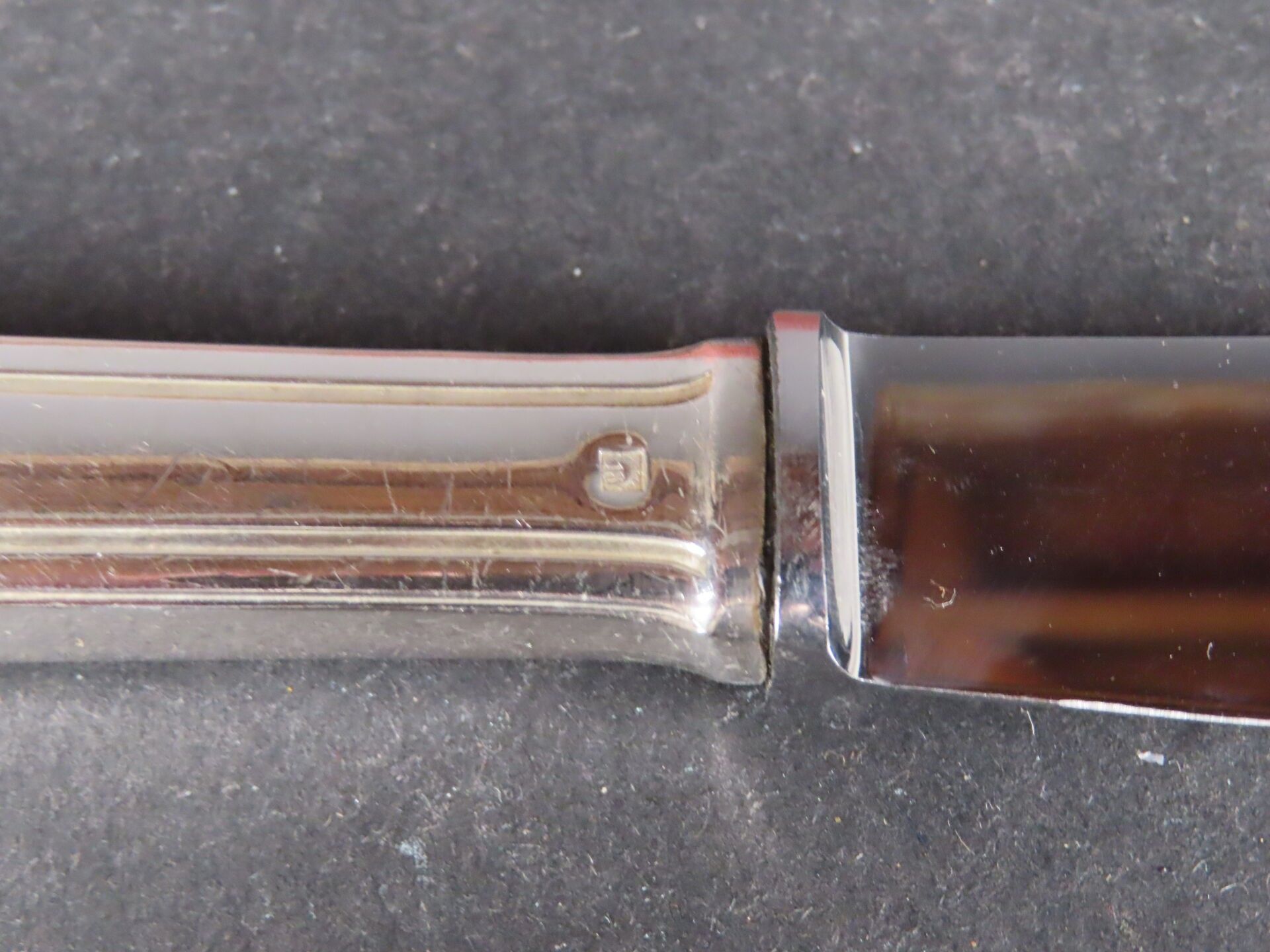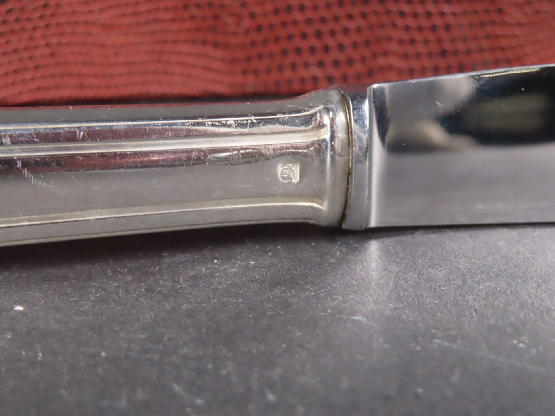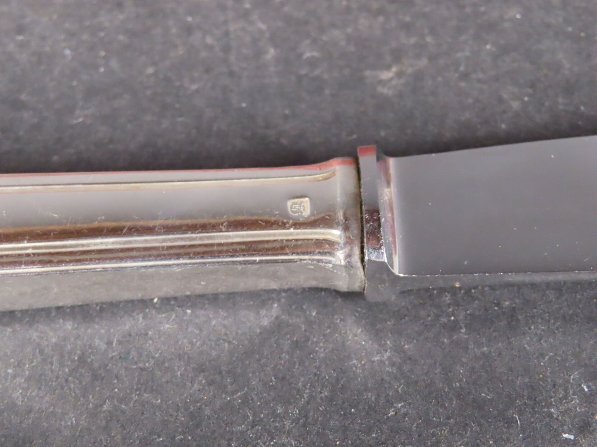 Set of 12 large knives, silver-plated metal handles with Art Deco decoration, case
