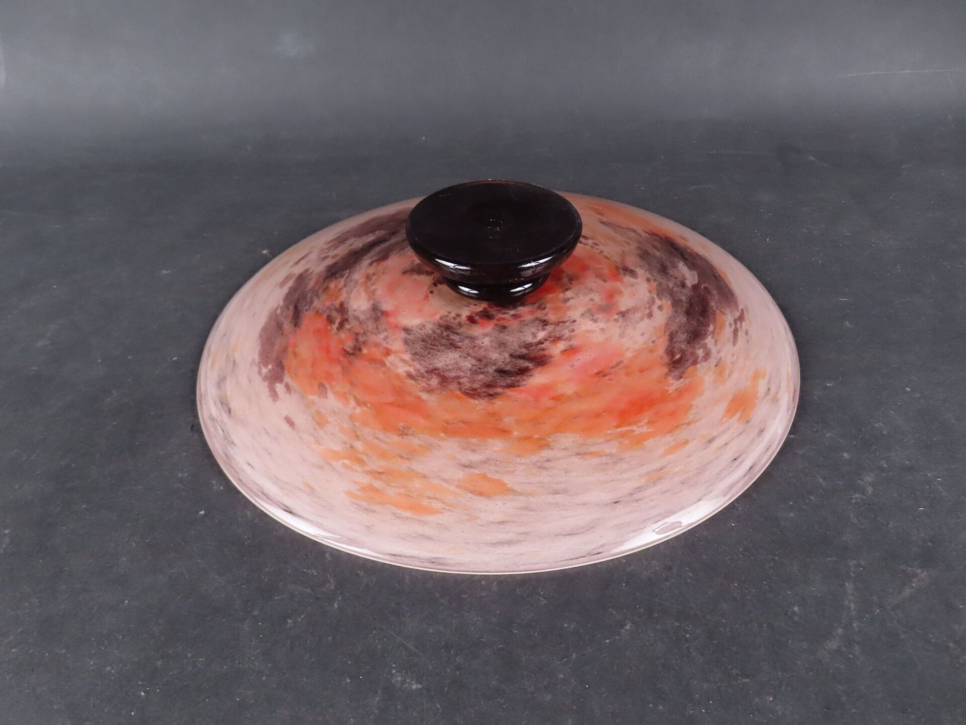 FRENCH GLASS. Orange/brown marmorated glass bowl, signed on …