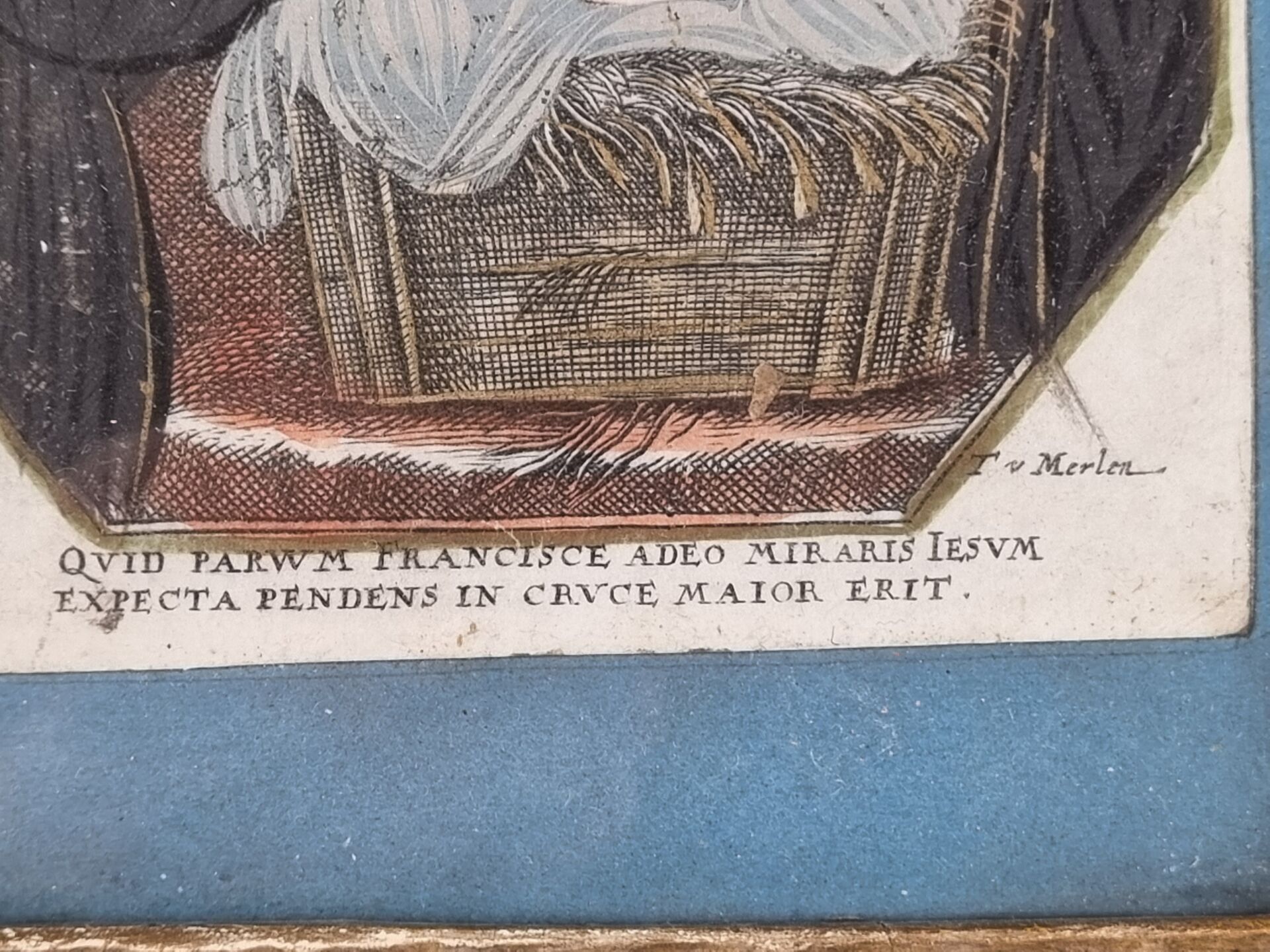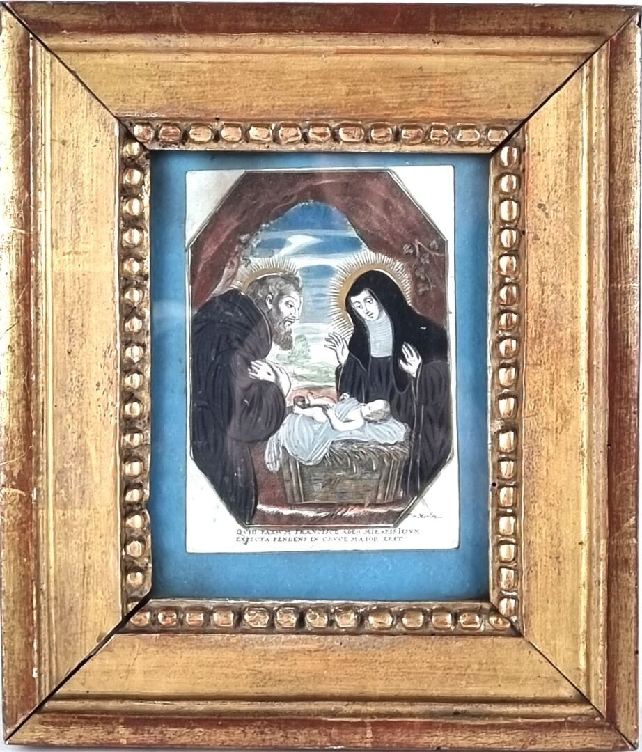 18th century school. Enhanced engraving depicting a nativity, in a gilded wooden frame (with frame: 25.5 x 22 cm)