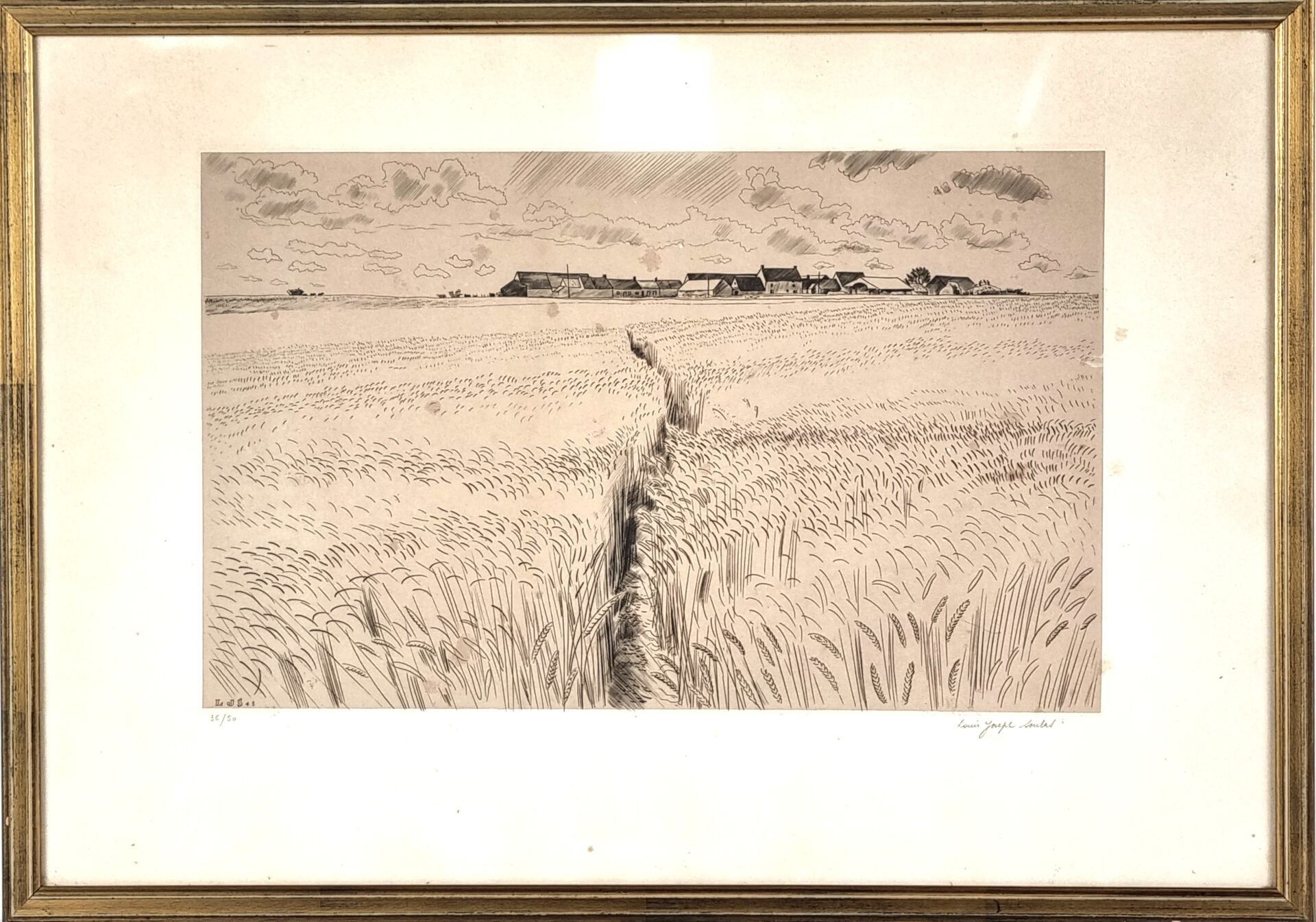 Louis-Joseph SOULAS (1905-1954). "The wheat field", burin, signed and numbered in the margin 33/50 (with frame: 41 x 58 cm) (stains)