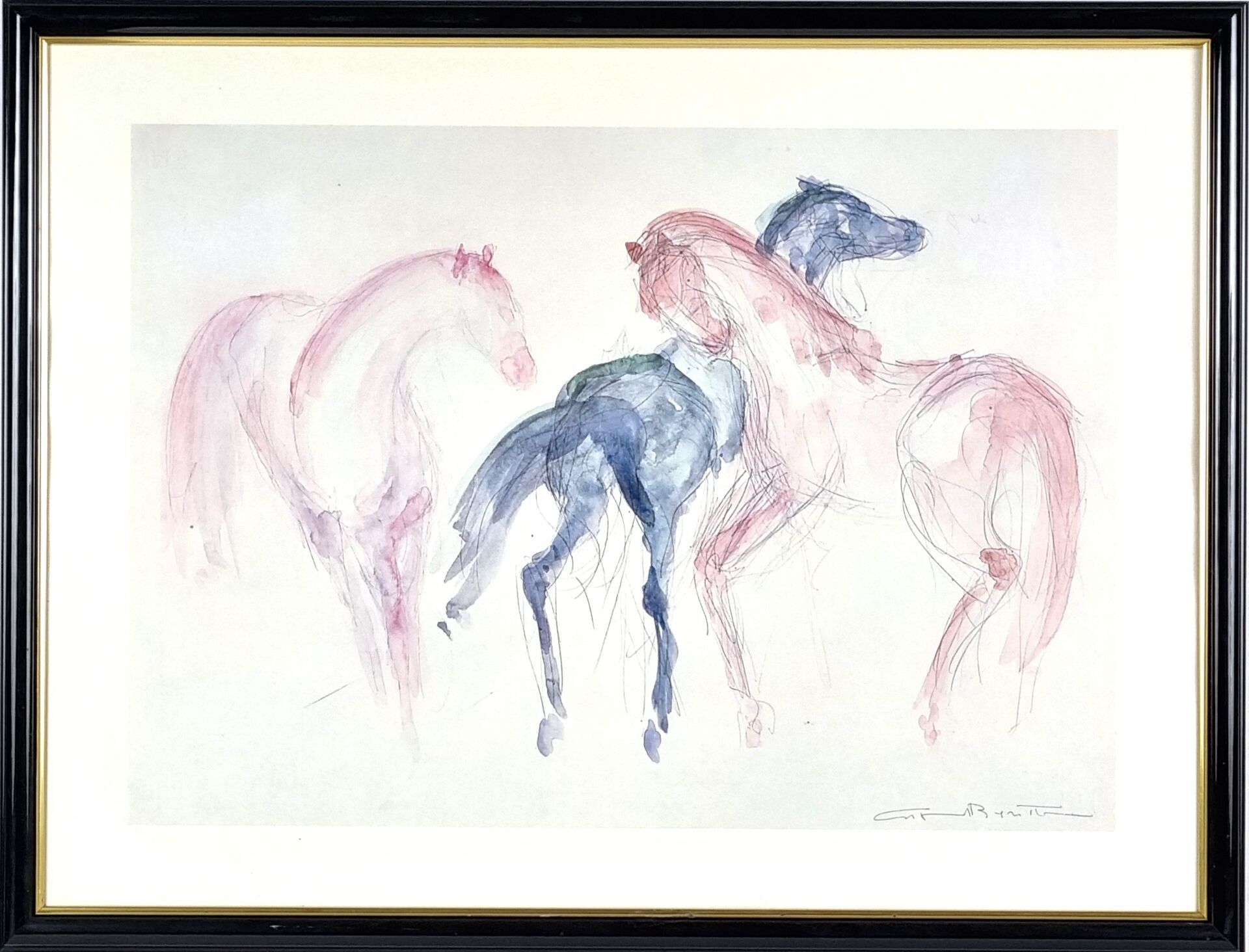 Framed facsimile of horses (with frame: 65 x 85 cm)