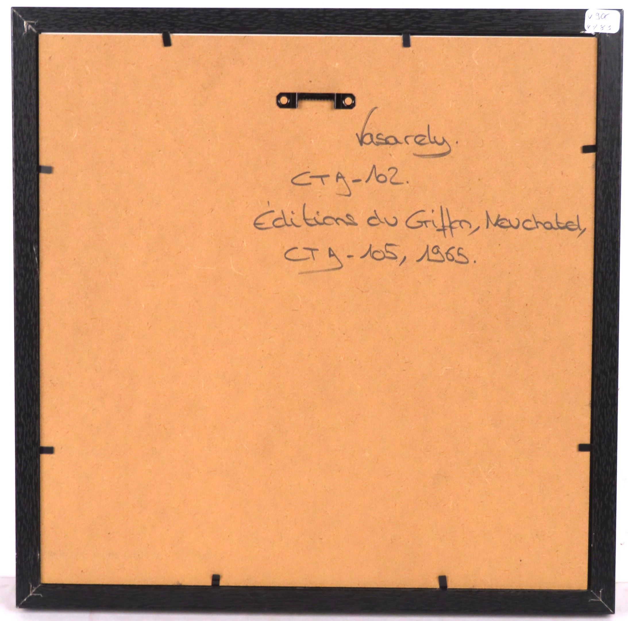 After Victor VASARELI (1906 - 1977) "Composition cinétique", silkscreen in colour on paper, unsigned, titled on the back, ed. du Griffon, Neuchâtel, blackened wooden frame (30 x 30 cm)