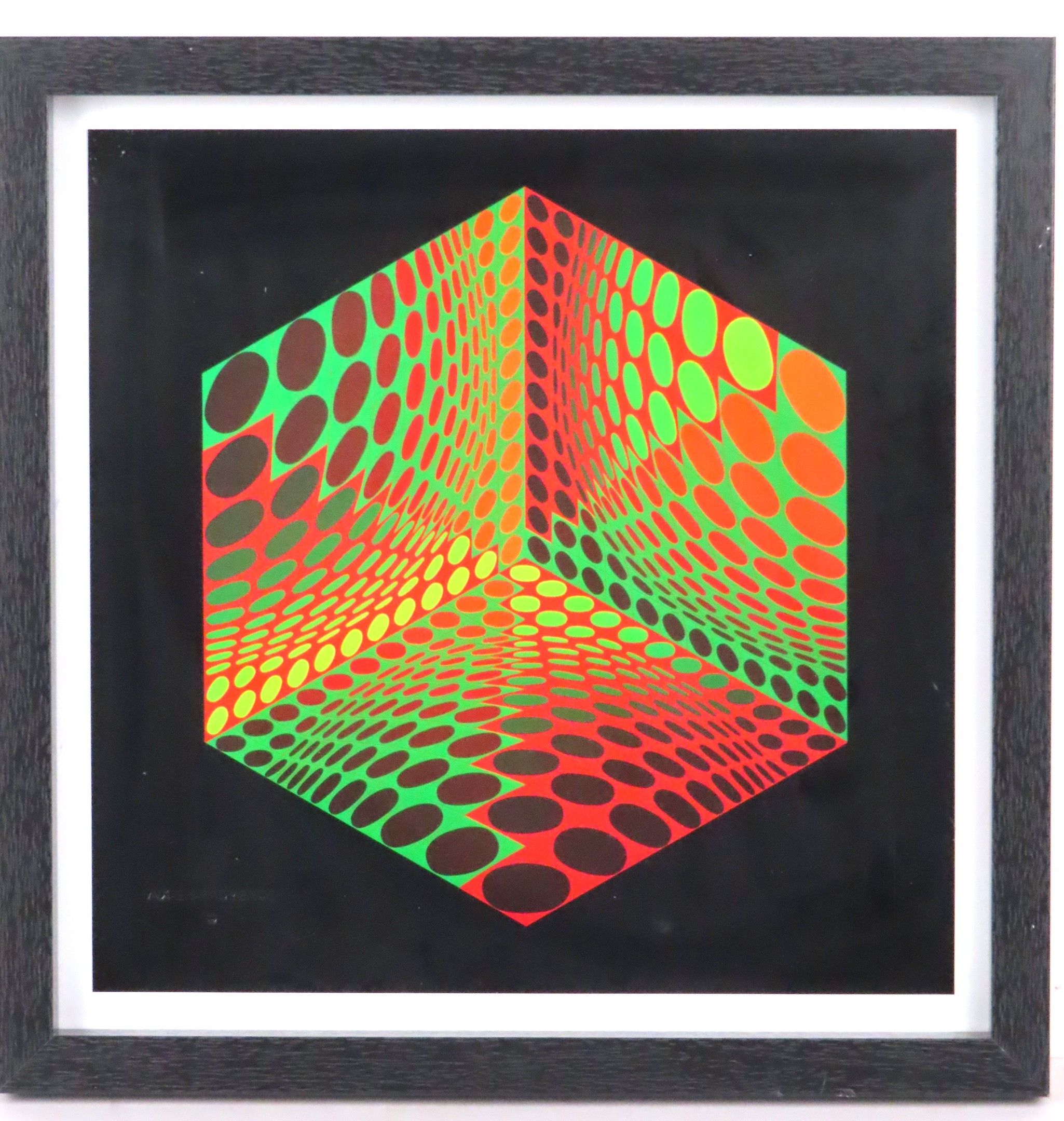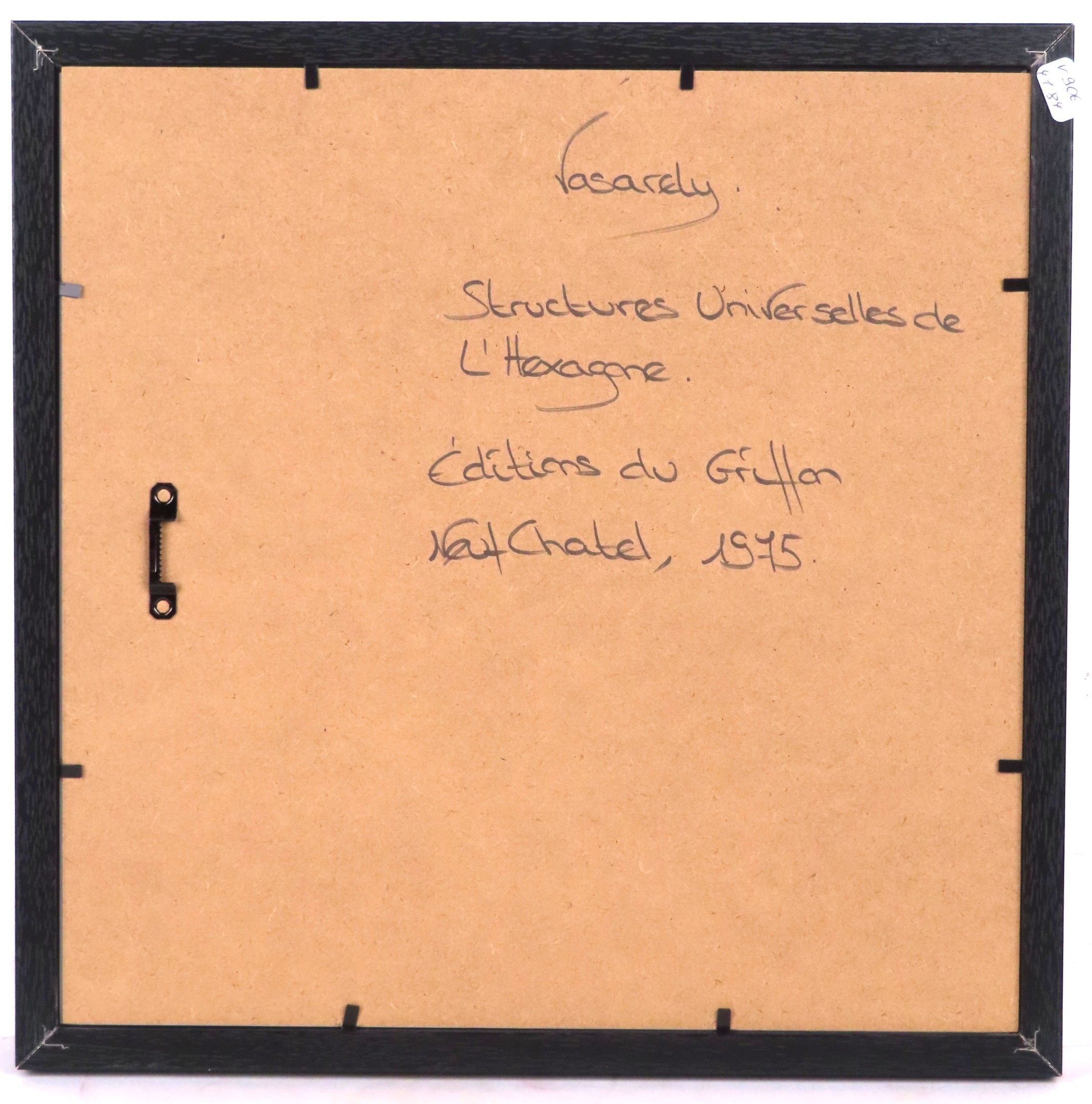 After Victor VASARELI (1906 - 1977) "Composition cinétique", silkscreen in colour on paper, unsigned, titled on the back, ed. du Griffon, Neuchâtel, blackened wooden frame (30 x 30 cm)