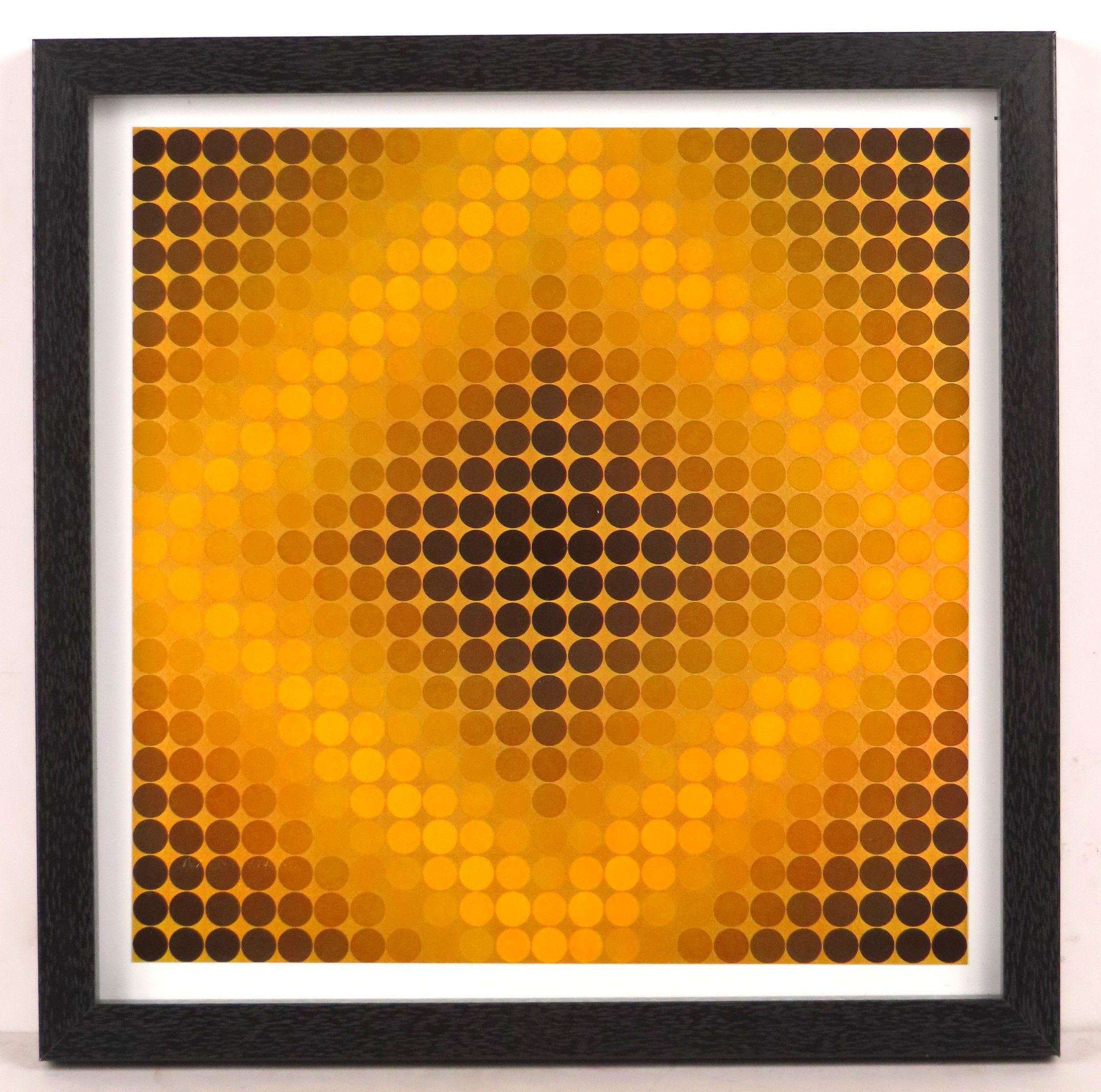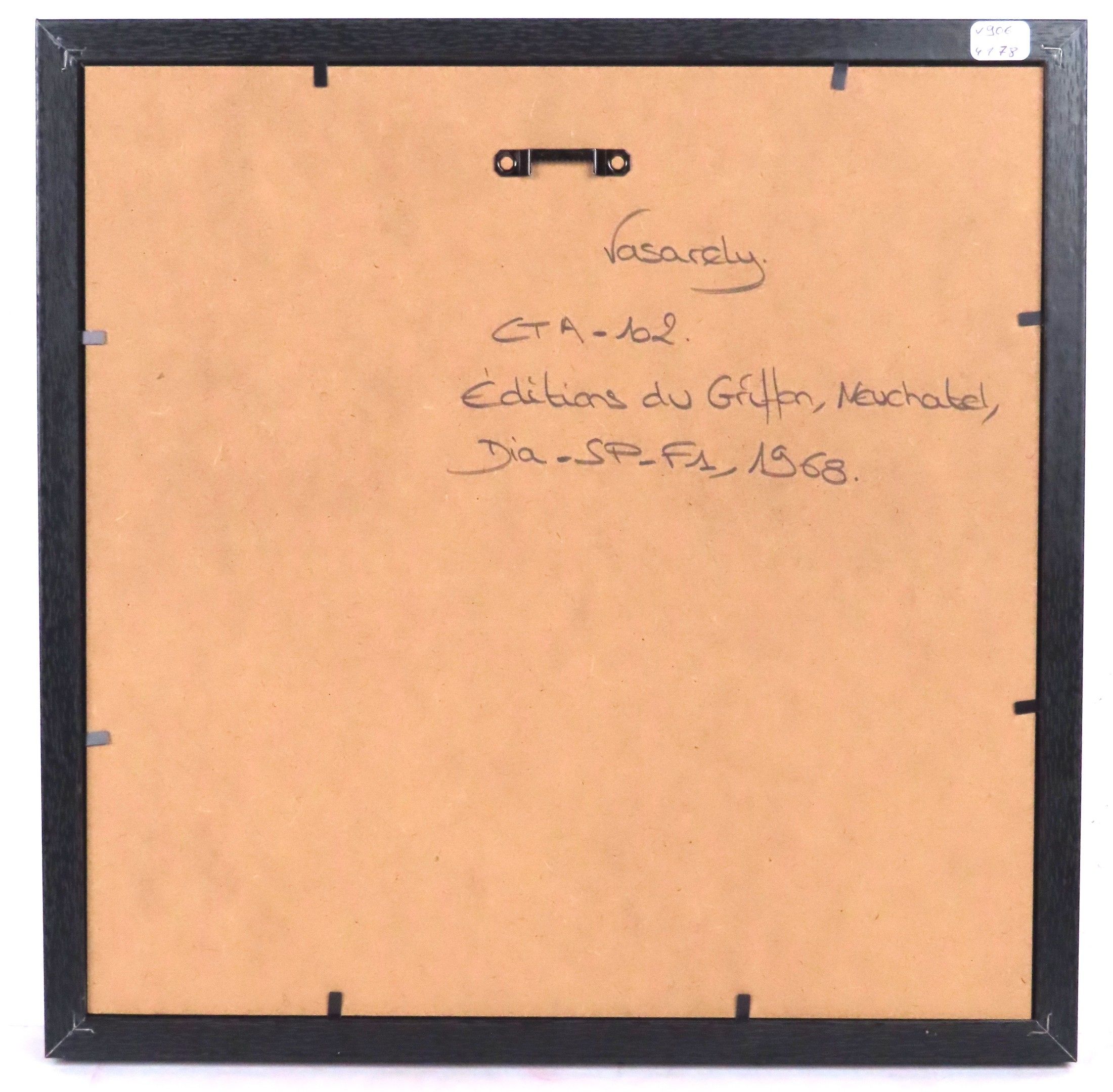After Victor VASARELI (1906 - 1977) "Composition cinétique", silkscreen in colour on paper, unsigned, titled on the back, ed. du Griffon, Neuchâtel, blackened wooden frame (30 x 30 cm)