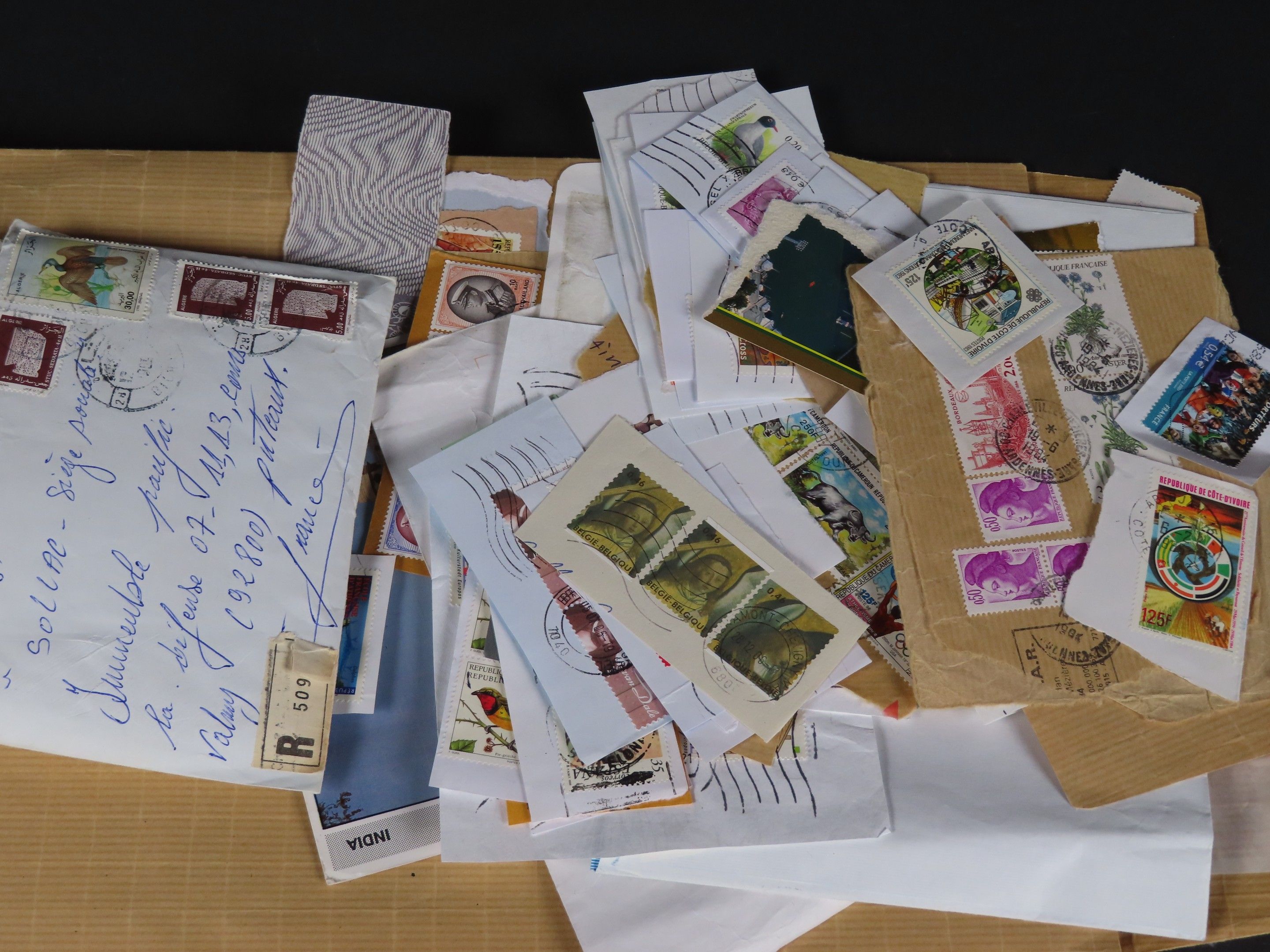 Lot of stamps including a bulk envelope of cancelled French …
