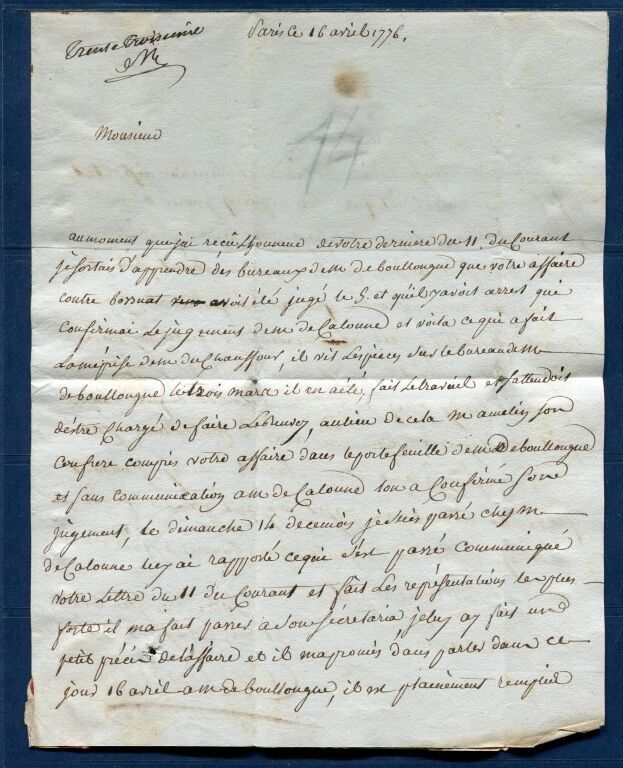 In addition to the postmark, the postage of the letter is mentioned in pen: 10 sols.