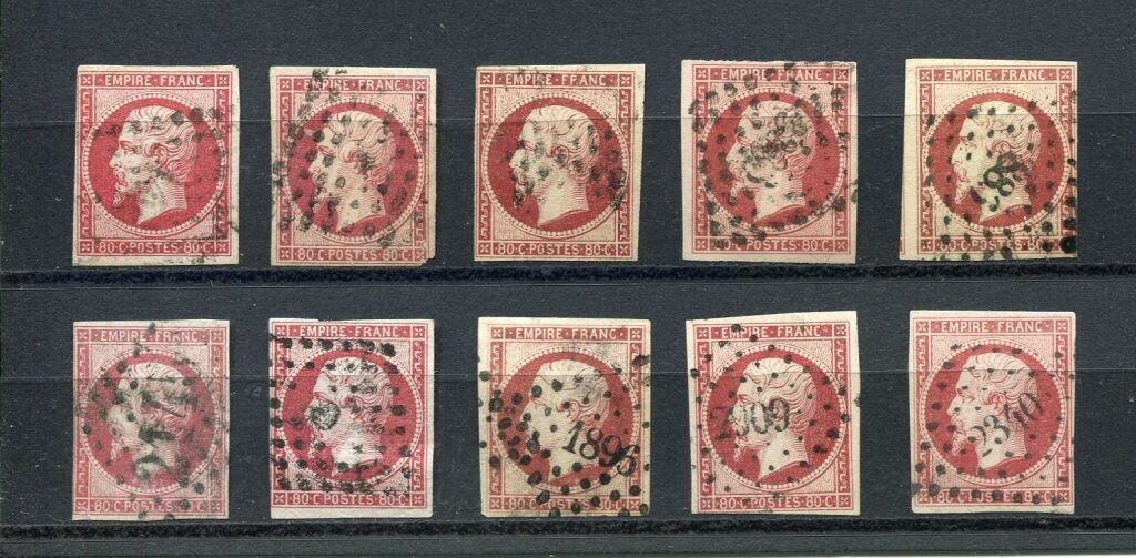 Numbers 17 A and 17 B - collection of ten stamps, beautiful, shades, cancellations.