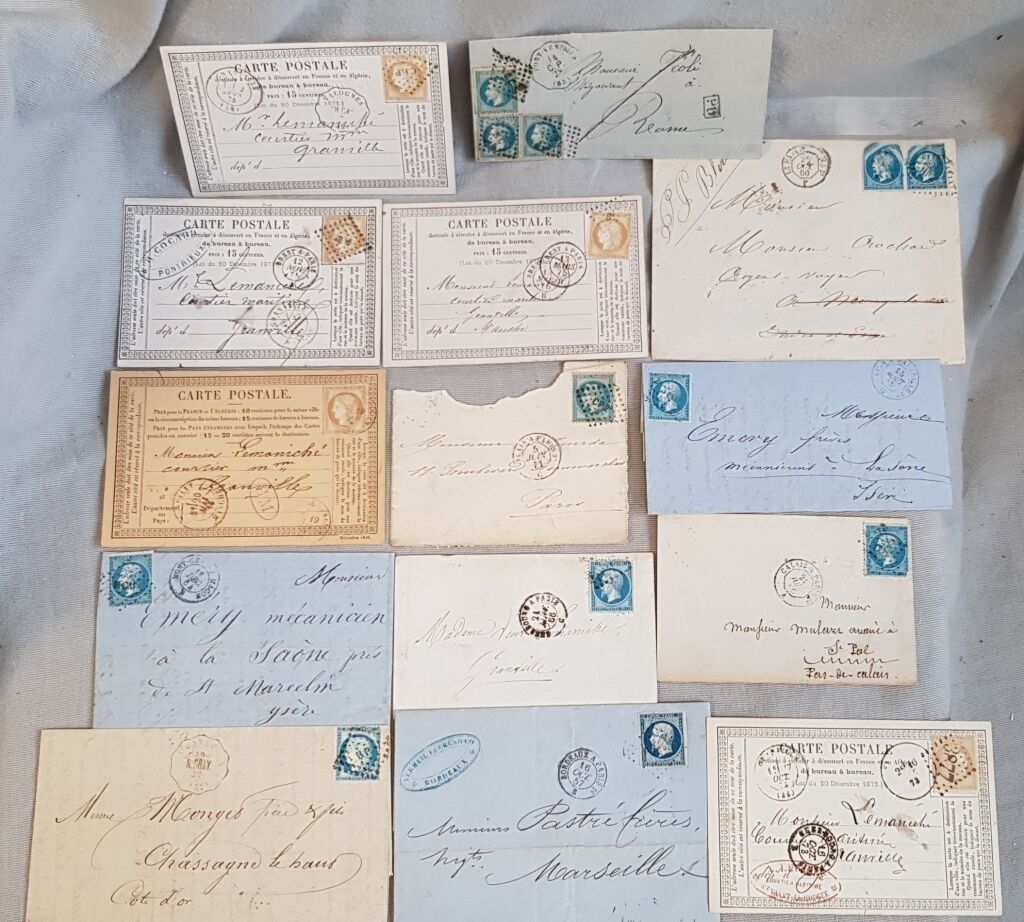 28 travelled documents, franked at 20 centimes, 40 centimes, 15 & 25 centimes...