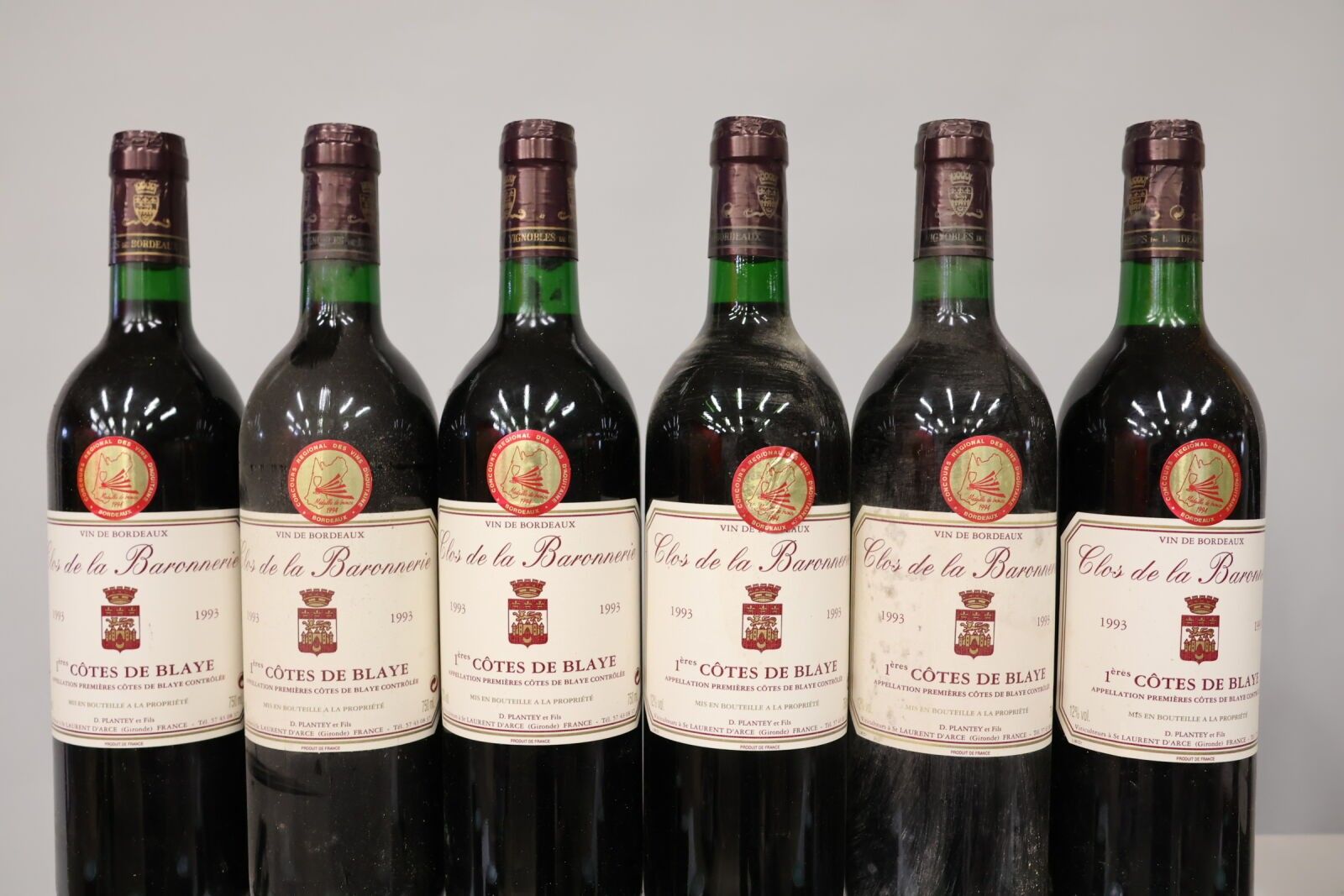 - 14 bottles - Clos de la Baronnerie - 1 ère côtes de Blaye - 1993 - Levels slightly low