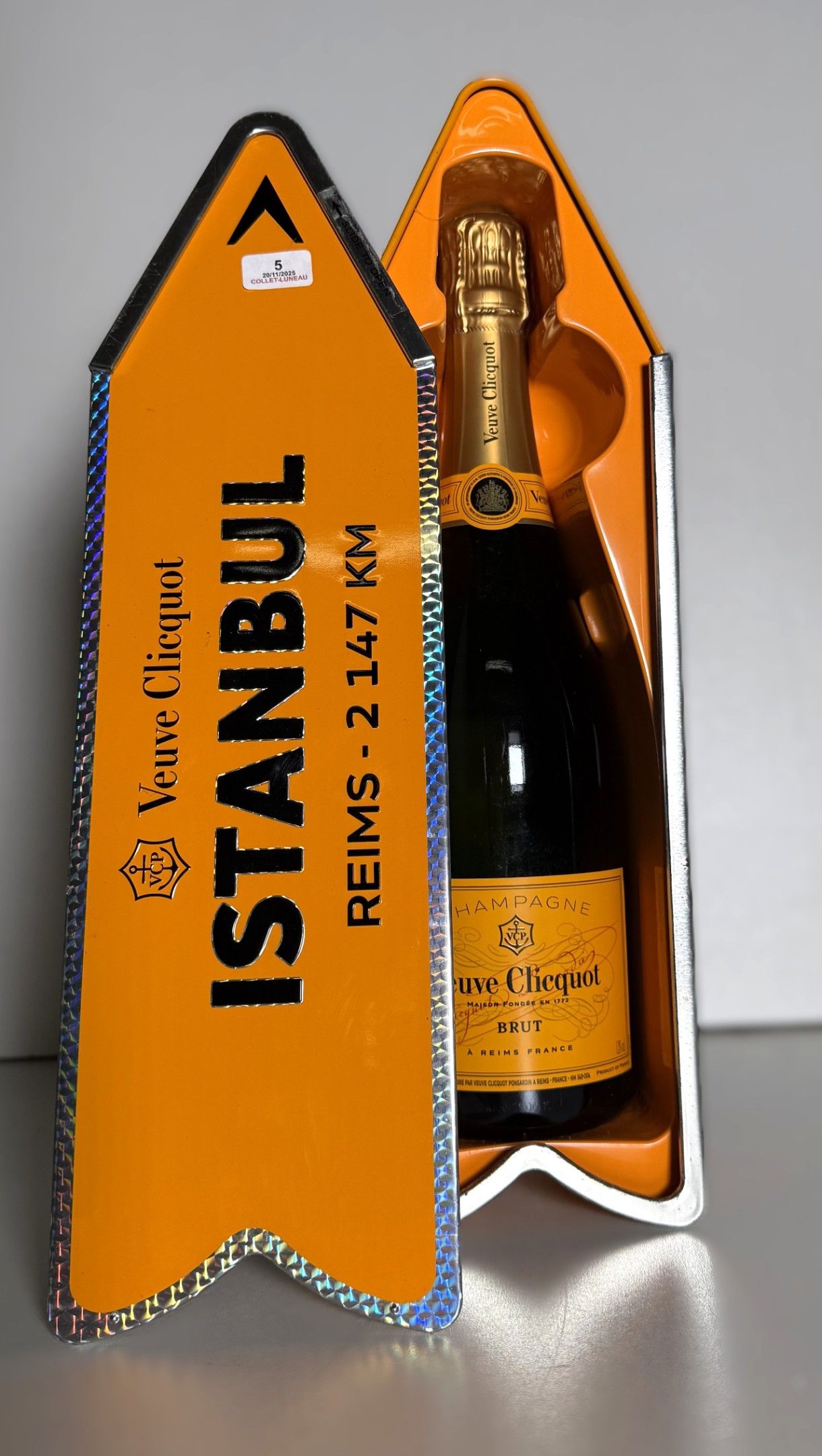 1 bottle Champagne Veuve Clicquot in metal box (damaged)