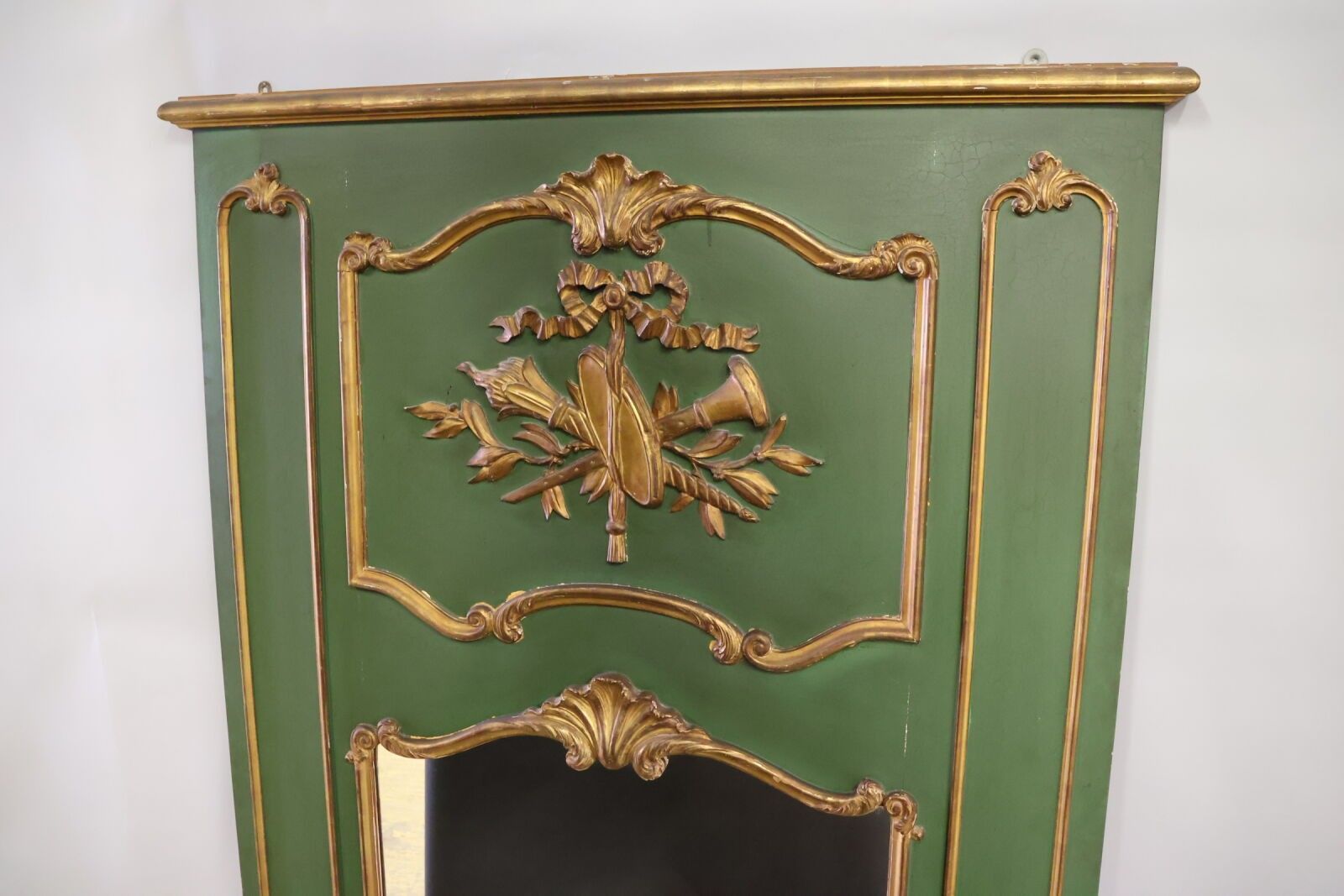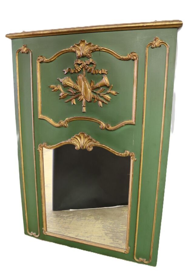 Green lacquered and gilded wood trumeau decorated with a mus…