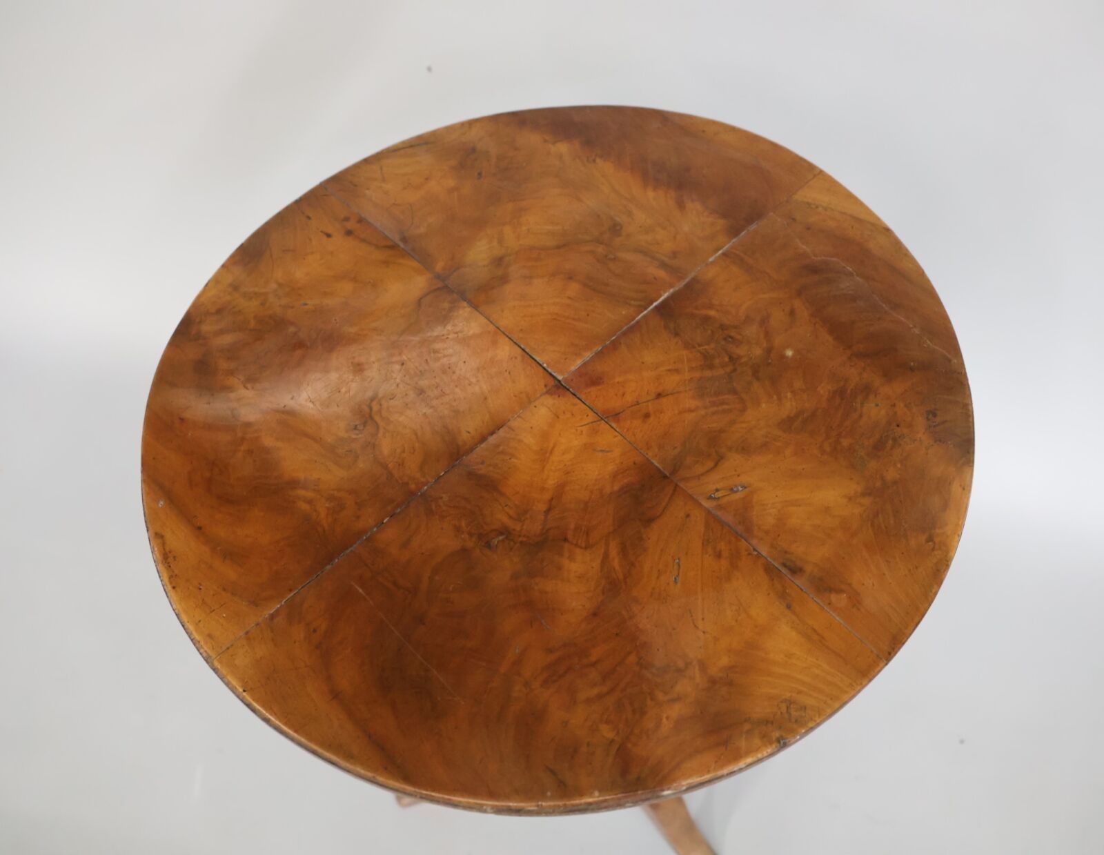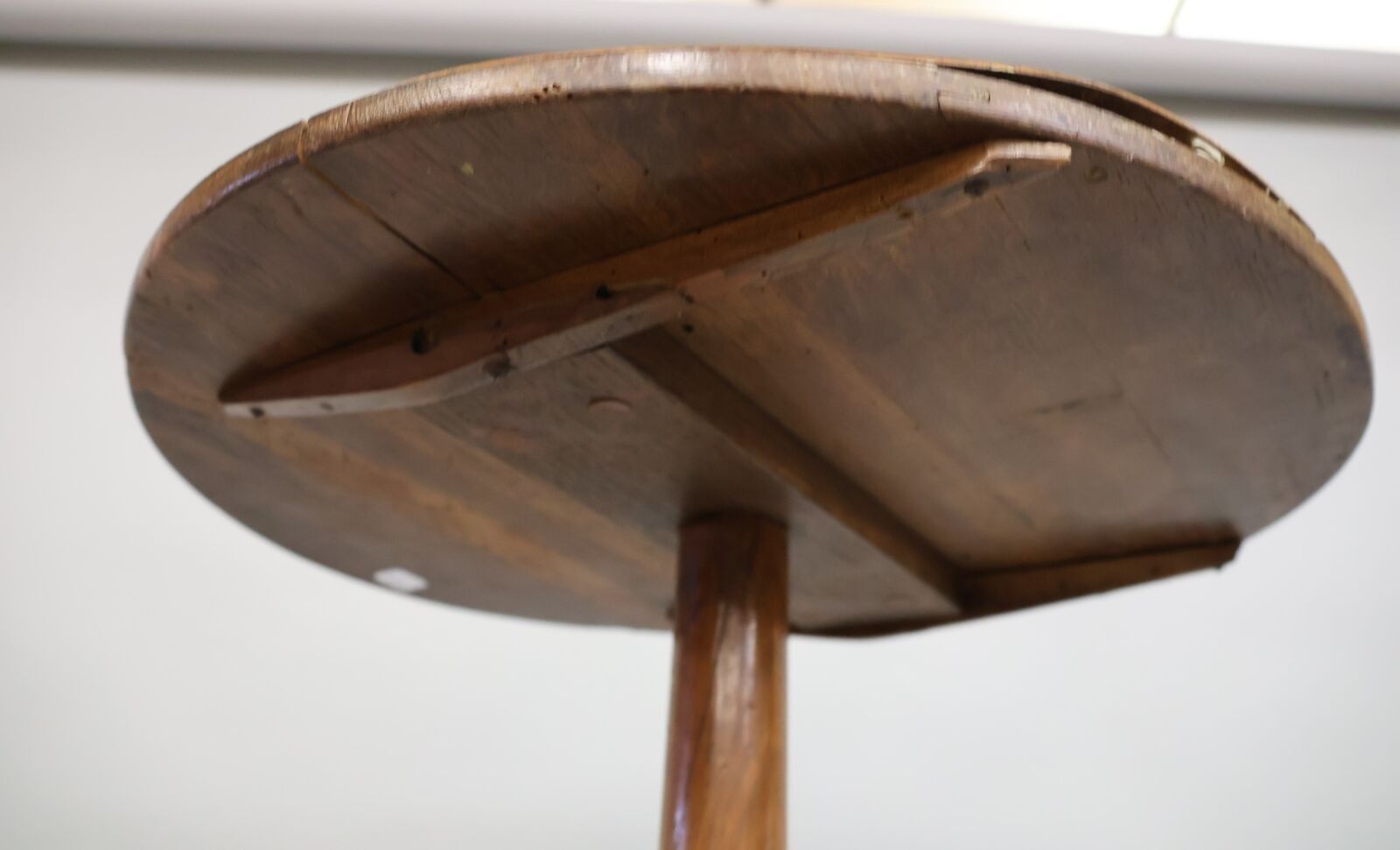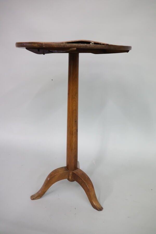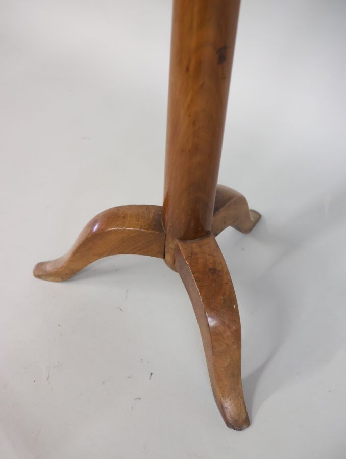 Wooden pedestal with tripod base and circular top