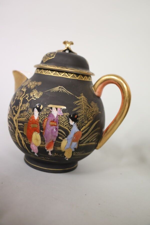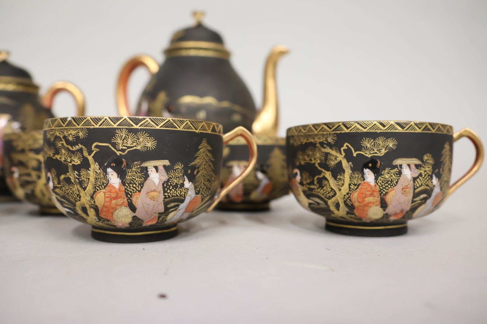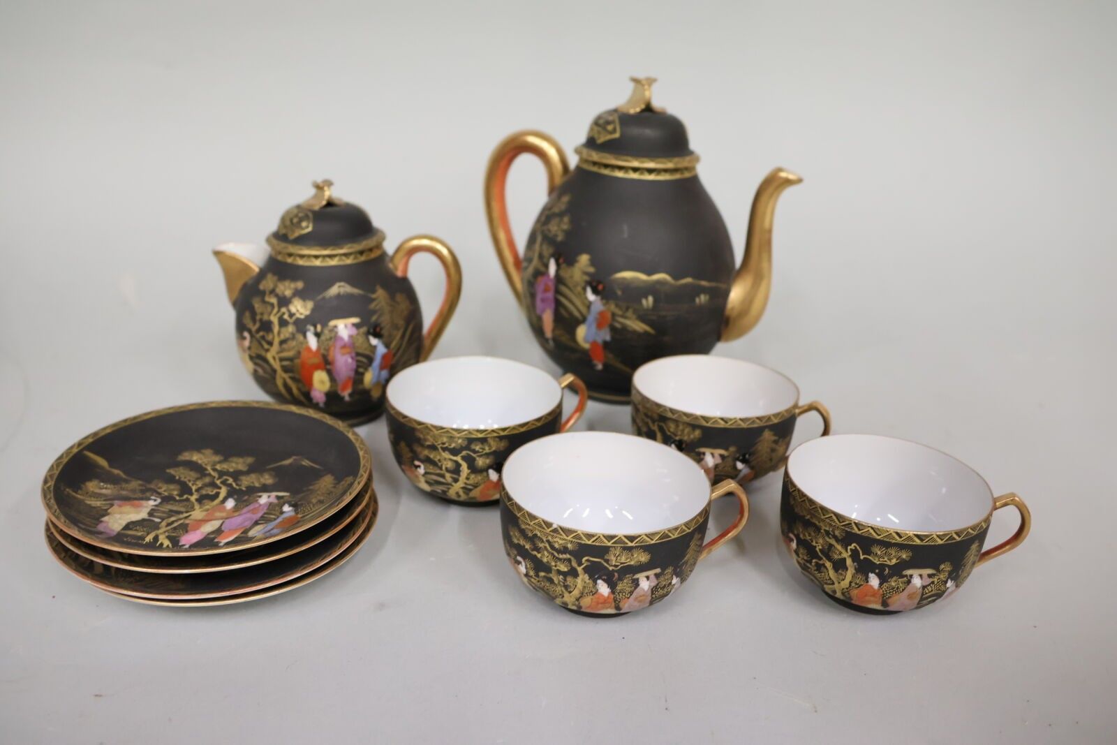 JAPAN Matte black and gilt porcelain tea service decorated w…