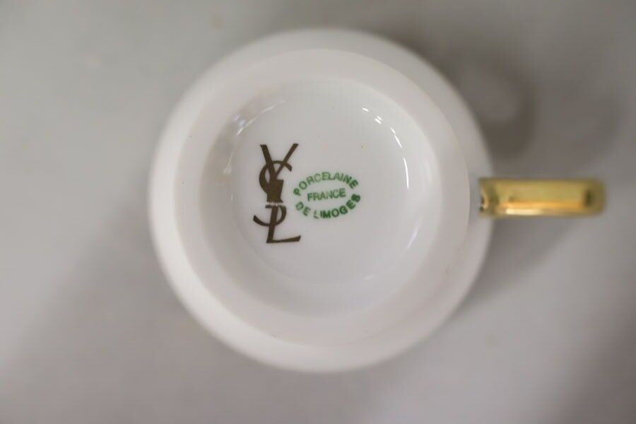 LIMOGES Yves-Saint-Laurent Gilded porcelain coffee set decor…