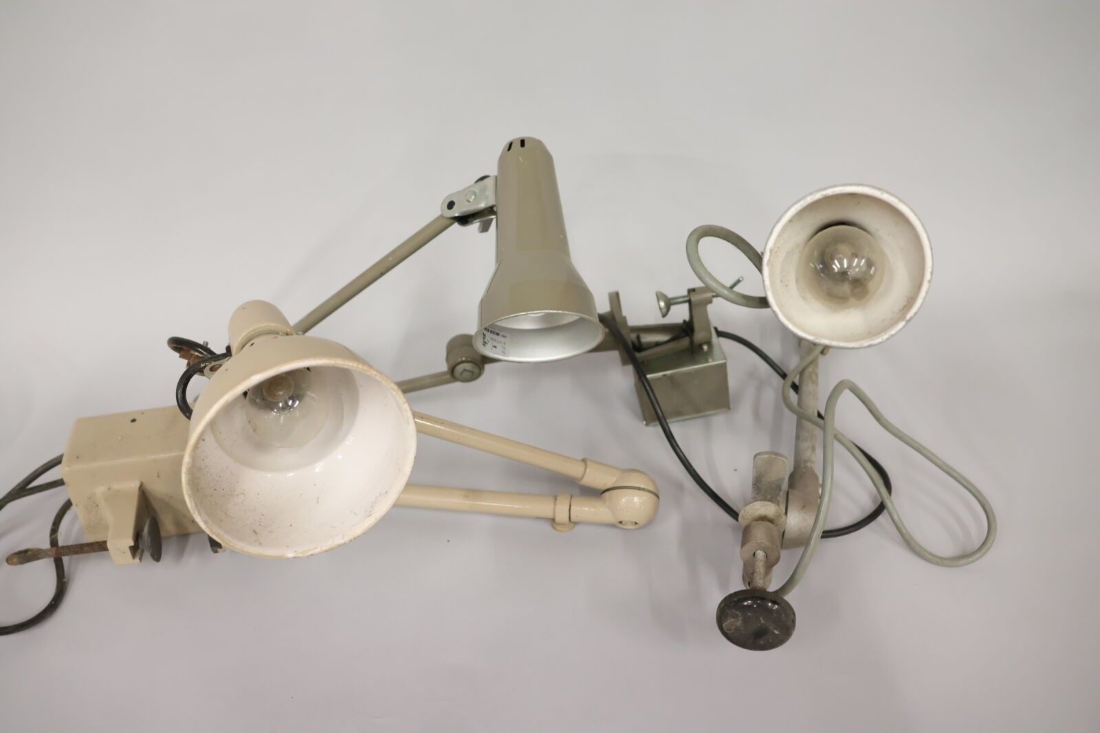 Set of 3 sewing-machine lamps with metal articulated arm and…