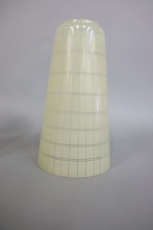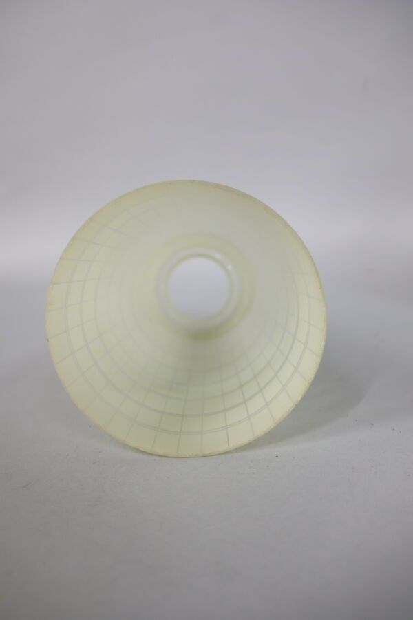Set of six cylindrical opaline lamp-glasses with check patterns